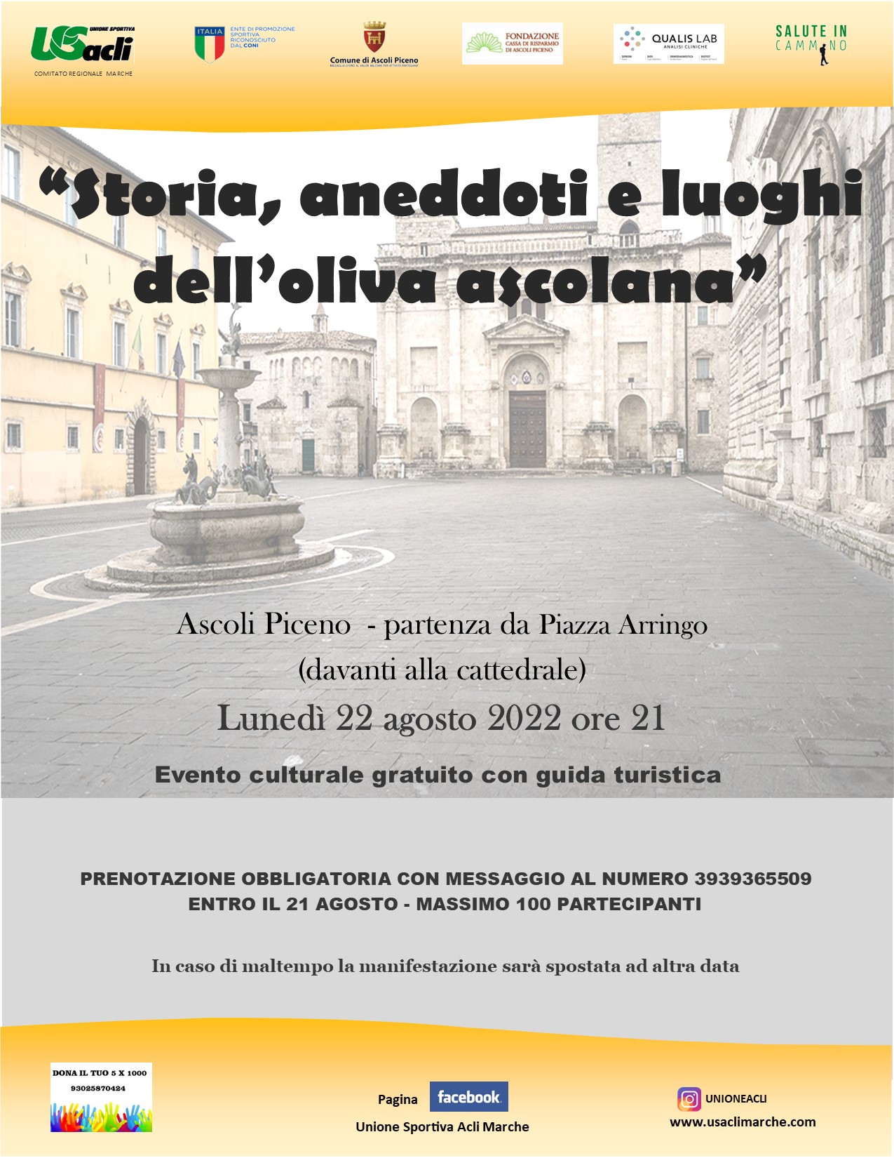 ASCOLI – Lunedì 22 agosto, con partenza da Piazza Arringo alle 21, è in programma un nuovo percorso culturale realizzato nell’ambito del progetto “Salute in cammino per la cultura”.