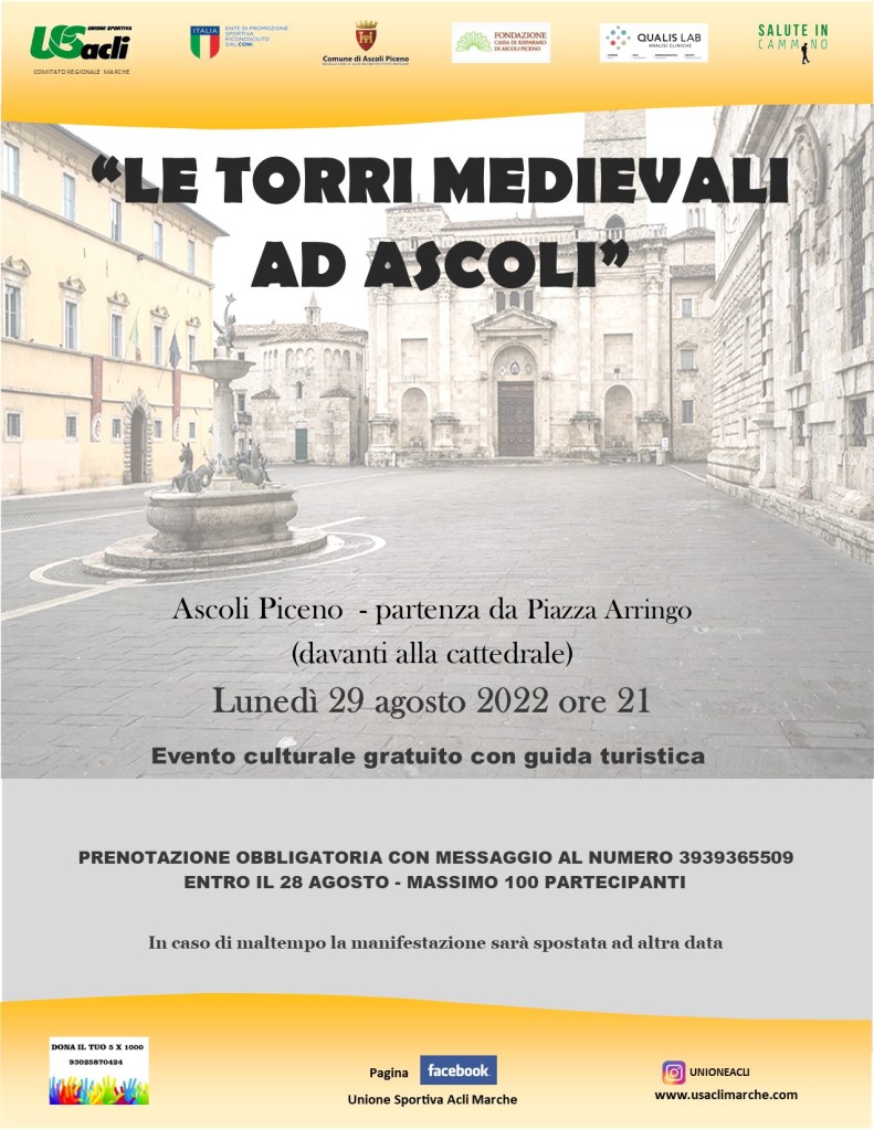 ASCOLI – Decimo appuntamento stagionale, lunedì 29 agosto, con l’iniziativa “Salute in cammino per la cultura” e con un percorso dedicato alle torri medievali.