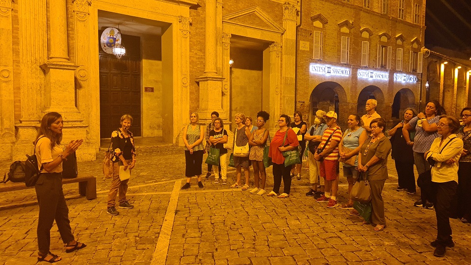 Il tour dedicato ad Aldo Sergiacomi ha permesso di ammirare il monumento delle merlettaie, di conoscere meglio altre opere dello scultore Offidano, di narrare la realizzazione dell’opera dedicata al Beato Bernardo (di cui è stato visitato anche il santuario).