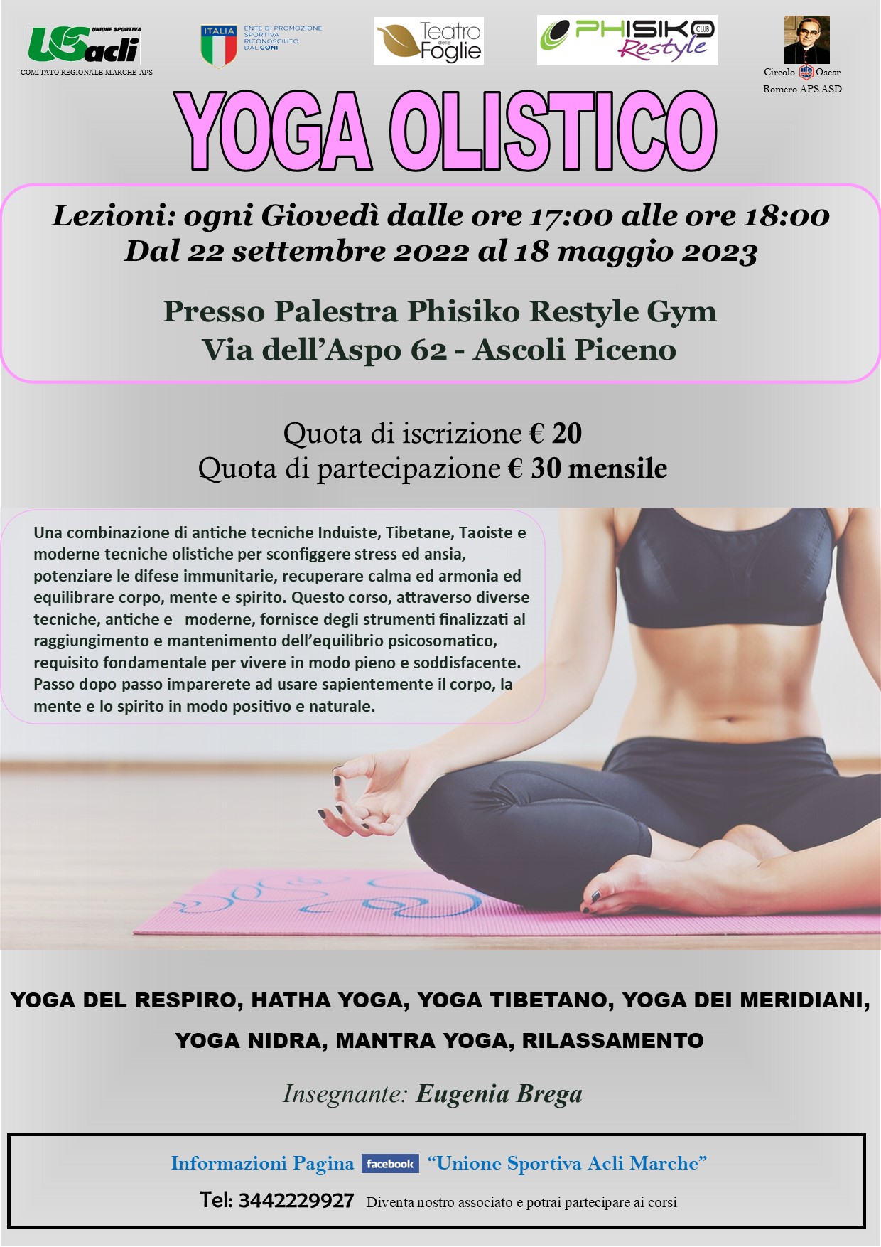 ASCOLI– Riprenderà giovedì 22 settembre il corso di yoga olistico presso la palestra Phisiko Restyle Gym ed organizzato da Circolo Acli Asd Aps Romero.