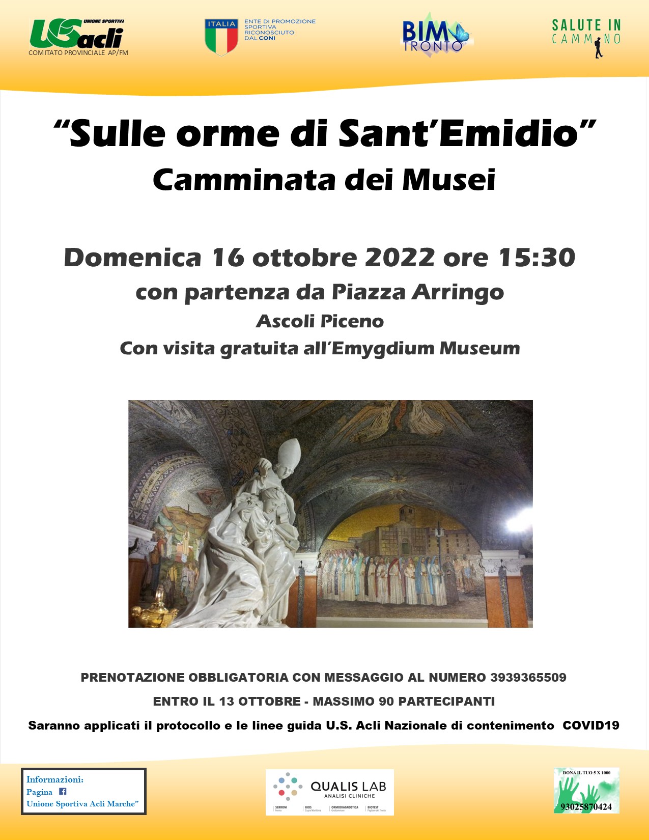 Domenica 16 ottobre, con partenza alle 15,30 da Piazza Arringo ad Ascoli Piceno, è in programma una iniziativa culturale dedicata al patrono della città Sant’Emidio.