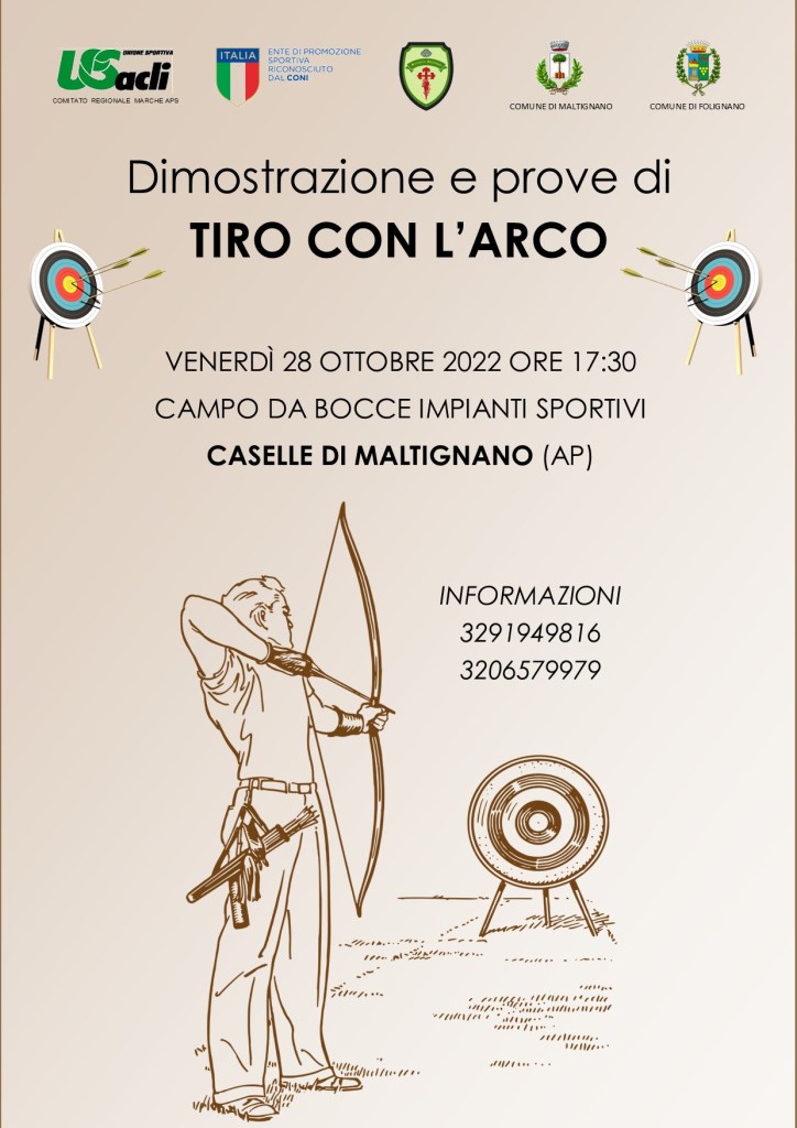 MALTIGNANO – Nell’ambito del progetto “In Corpore sano 2022”, promosso dalle amministrazioni comunali di Maltignano e Folignano, venerdì 28 ottobre si svolgeranno una dimostrazione e prova gratuite di tiro con l’arco.