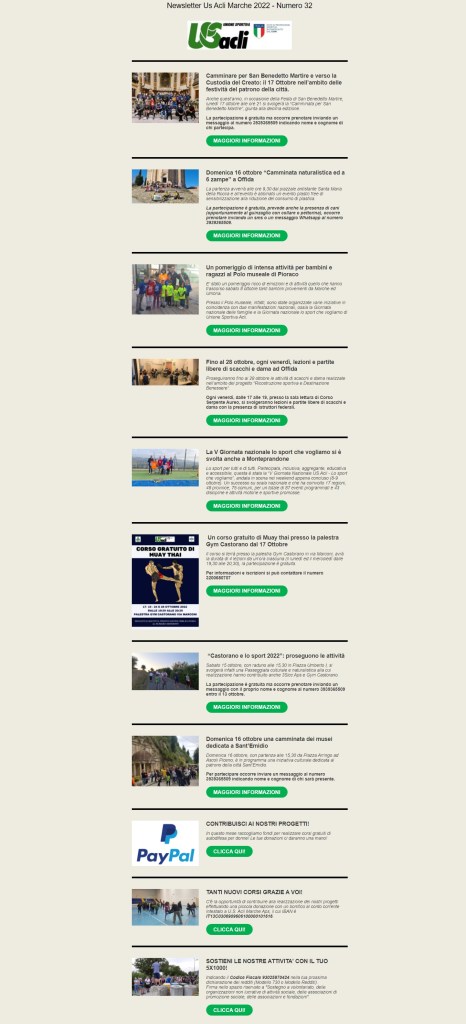 novembre 8, 2022 Unione Sportiva Acli Marche Newsletter n. 32 del 13 Ottobre 2022 Condividi: Fai clic per condividere su X (Si apre in una nuova finestra) X Fai clic per condividere su Facebook (Si apre in una nuova finestra) Facebook Mi piace Caricamento... Correlati