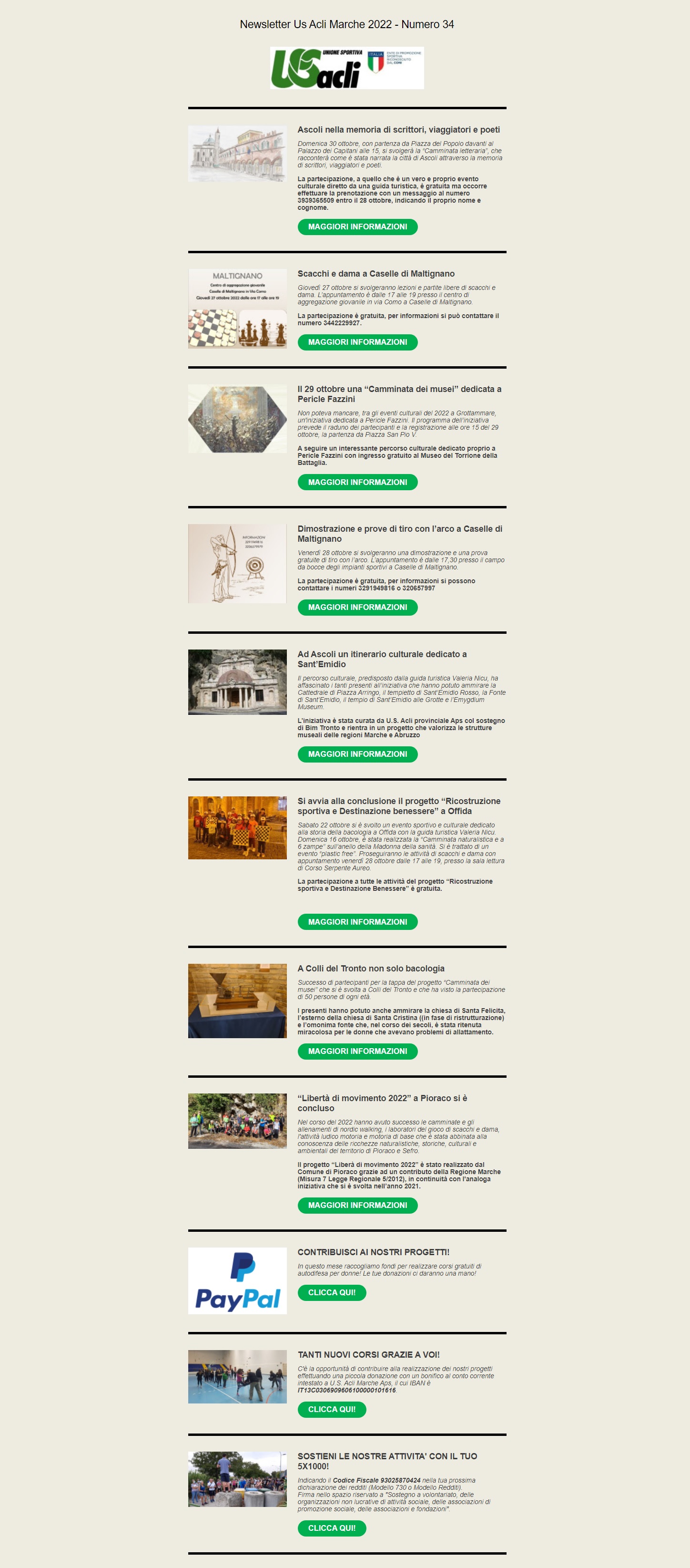 novembre 8, 2022novembre 8, 2022 Unione Sportiva Acli Marche Newsletter n. 34 del 27 Ottobre 2022 Condividi: Fai clic per condividere su X (Si apre in una nuova finestra) X Fai clic per condividere su Facebook (Si apre in una nuova finestra) Facebook Mi piace Caricamento... Correlati