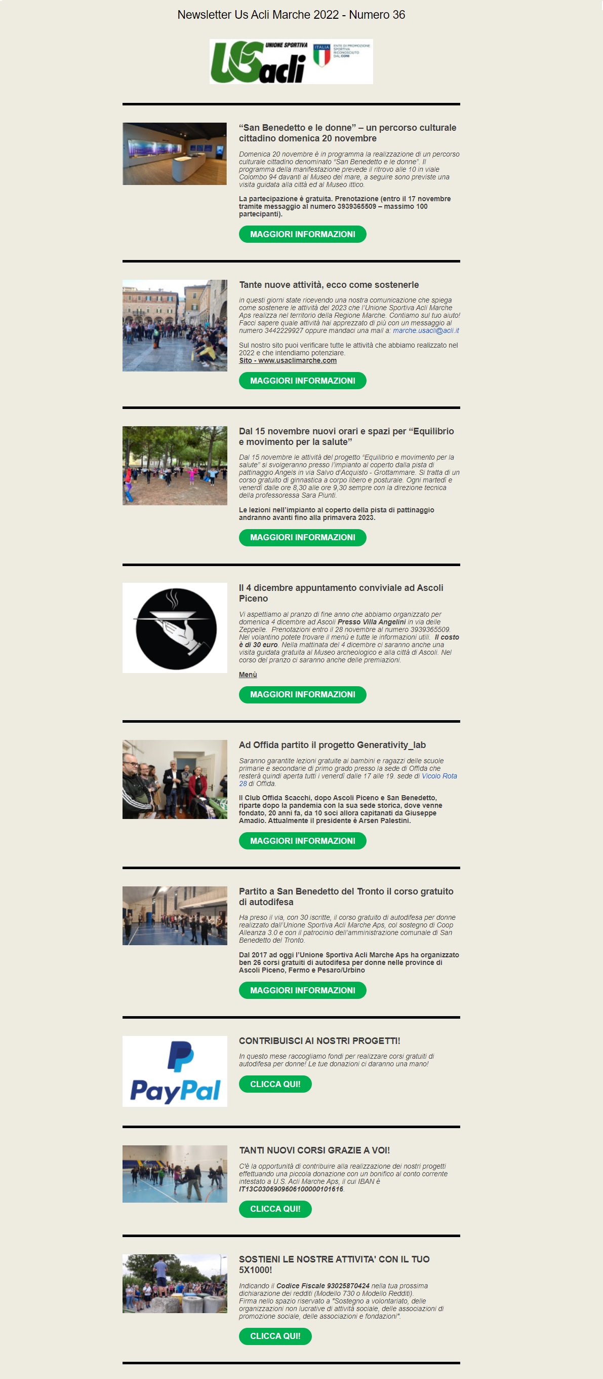 novembre 17, 2022 Unione Sportiva Acli Marche Newsletter n. 36 del 17 Novembre 2022 Condividi: Fai clic per condividere su X (Si apre in una nuova finestra) X Fai clic per condividere su Facebook (Si apre in una nuova finestra) Facebook Mi piace Caricamento... Correlati