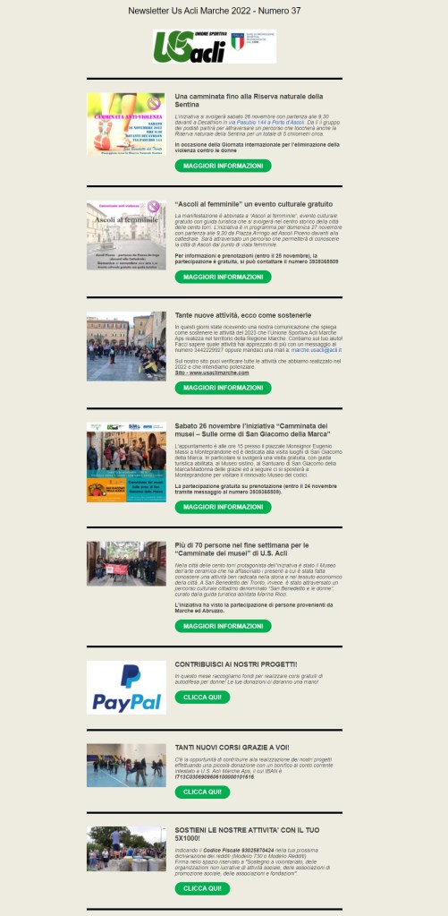novembre 24, 2022 Unione Sportiva Acli Marche Newsletter n. 37 del 24 Novembre 2022 Condividi: Fai clic per condividere su X (Si apre in una nuova finestra) X Fai clic per condividere su Facebook (Si apre in una nuova finestra) Facebook Mi piace Caricamento... Correlati
