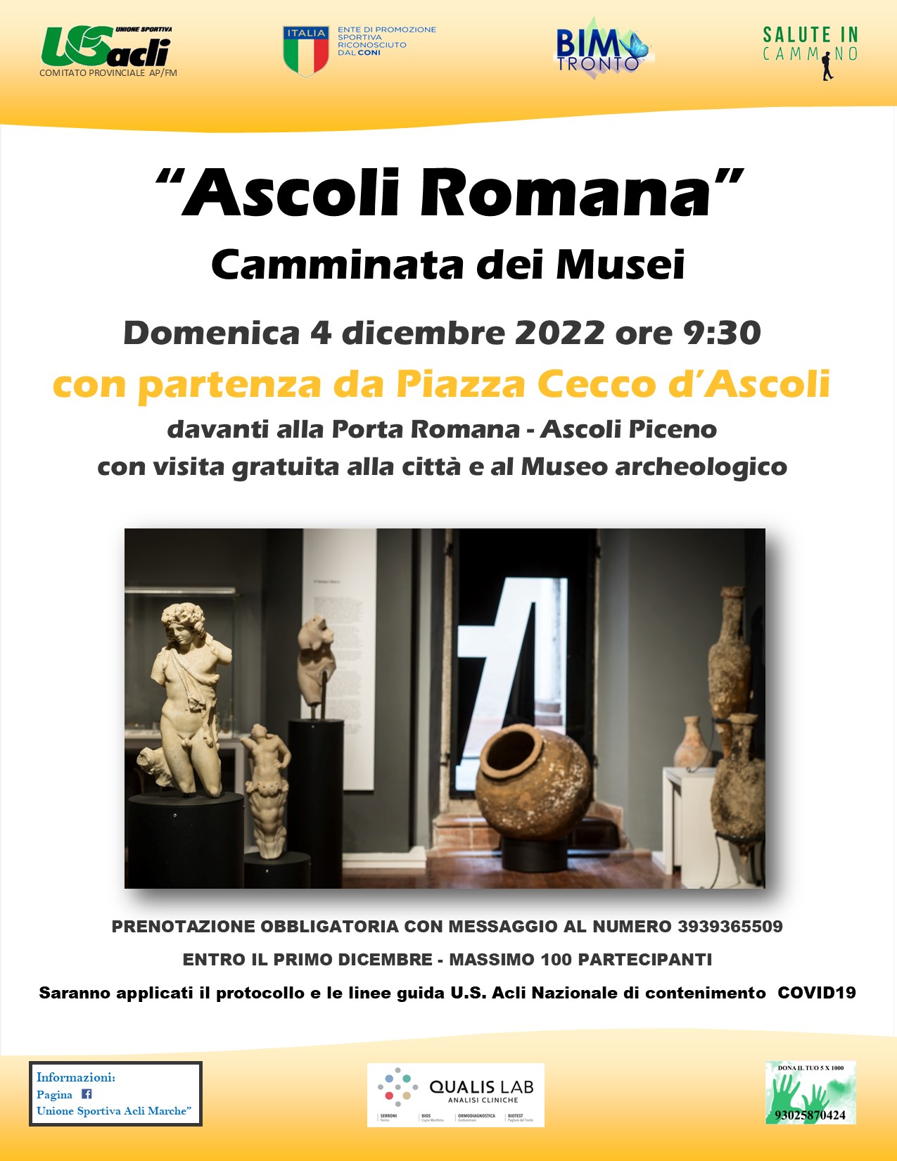 Domenica 4 dicembre si svolgerà l’evento culturale “Ascoli Romana” che è abbinato ad una nuova tappa del progetto “Camminata dei musei”.