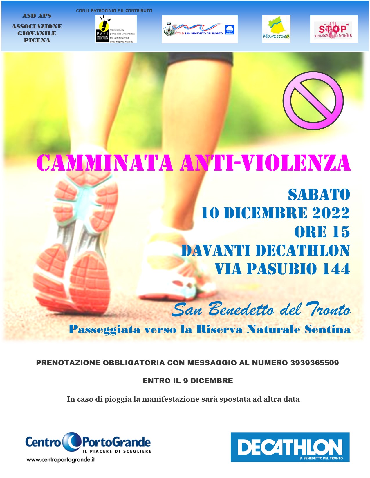 SAN BENEDETTO DEL TRONTO – E’ stata posticipata al 10 dicembre, causa previsioni meteo pioggia, la “Camminata antiviolenza” che avrà come destinazione la Riserva naturale della Sentina.