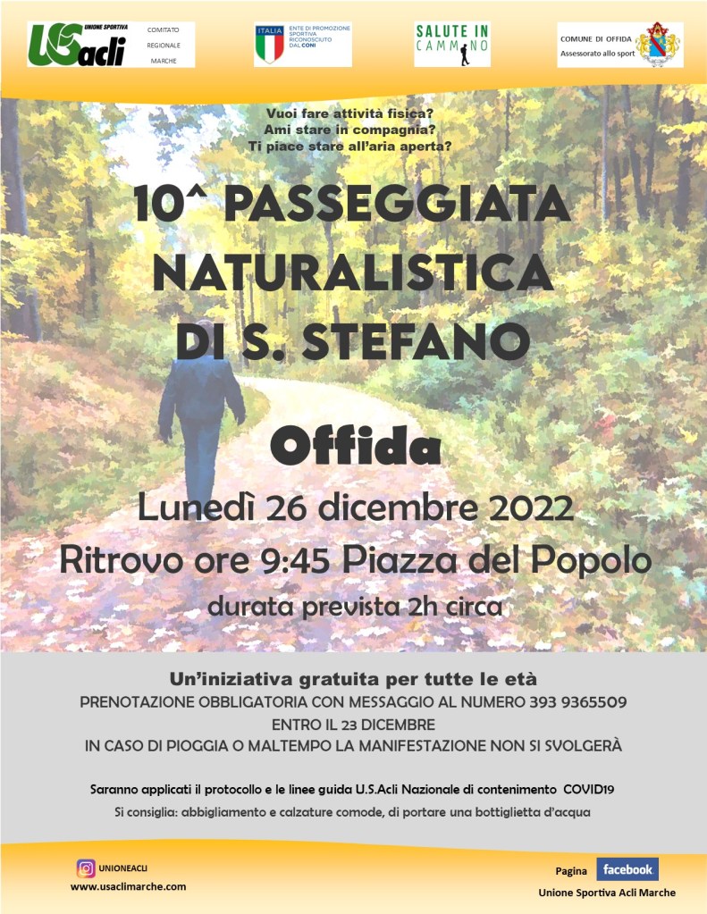 OFFIDA – Il 26 dicembre è in programma la decima edizione della Passeggiata naturalistica di Santo Stefano.