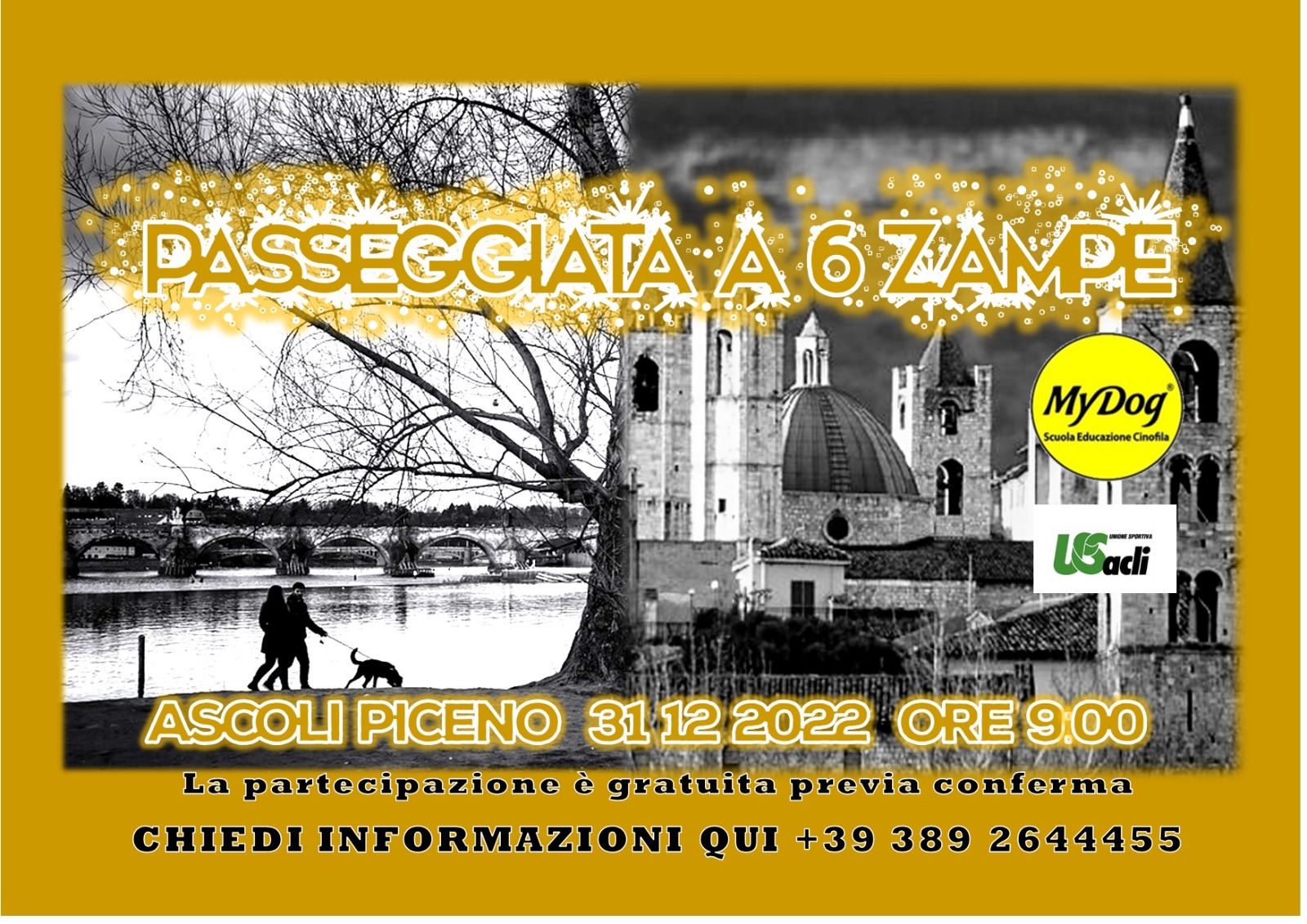 Sabato 31 dicembre, con partenza alle 9,30 davanti al Piazzale della stazione di Ascoli, è in programma una Passeggiata a 6 zampe.