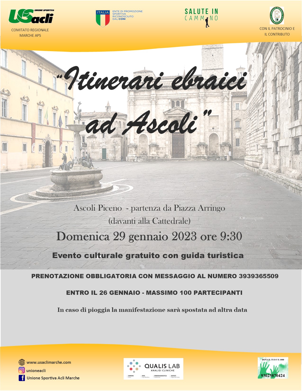 Nell’ambito delle iniziative del “Giorno della memoria” l’U.S. Acli Marche Aps, col patrocinio e il contributo del Consiglio Regionale – Assemblea legislativa delle Marche, organizza l’evento culturale “Itinerari ebraici ad Ascoli”.