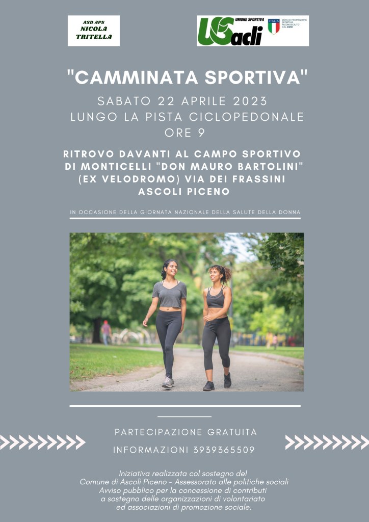 ASCOLI – Sabato 22 aprile, in occasione della Giornata nazionale della salute della donna, si svolgerà una camminata sportiva con partenza alle ore 9 davanti al velodromo/campo sportivo di Monticelli (via dei Frassini).
