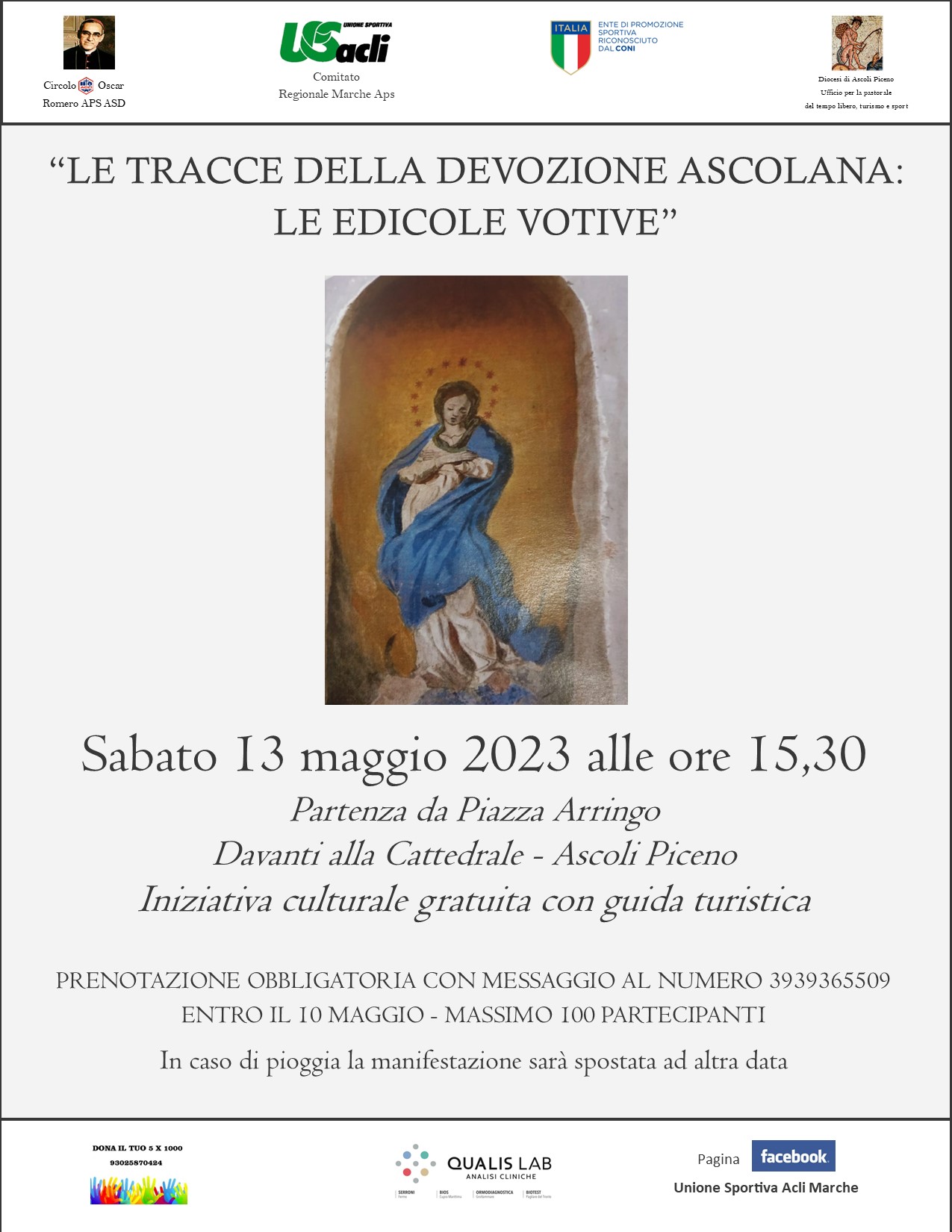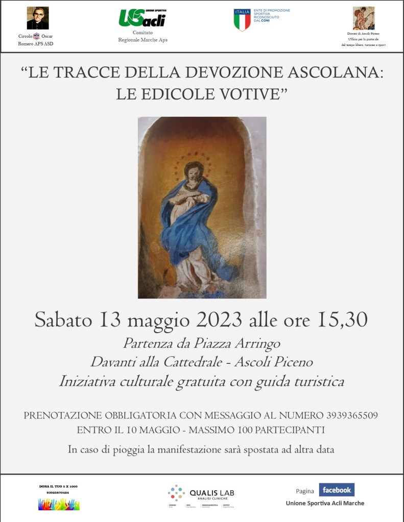 Sabato 13 maggio si svolgerà il tour culturale “Le tracce della devozione ascolana: le edicole votive” con partenza alle 15,30 davanti alla Cattedrale in Piazza Arringo ad Ascoli Piceno.