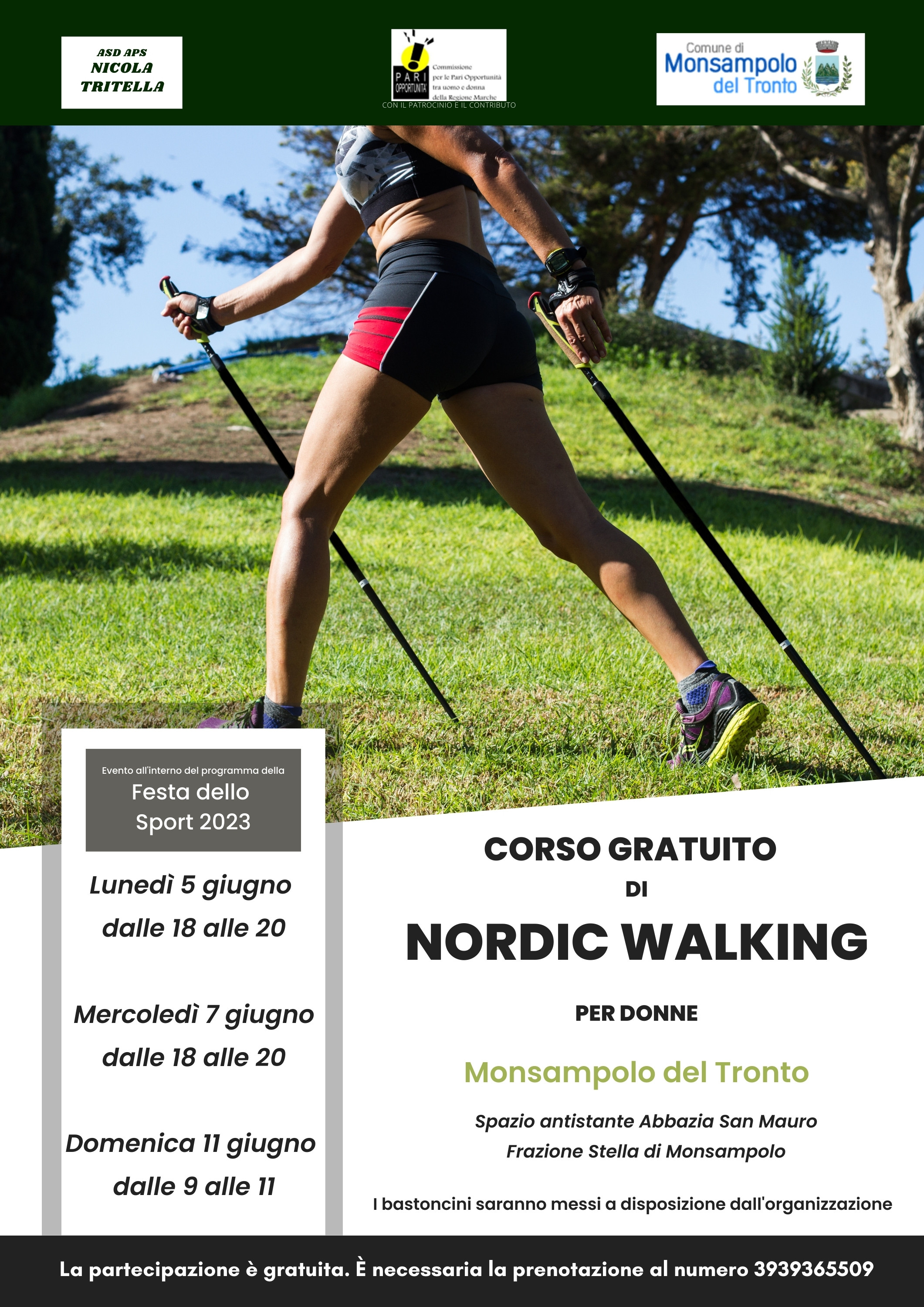 MONSAMPOLO DEL TRONTO – In occasione della “Festa dello sport”, l’A.S.D. Aps Tritella organizza un corso gratuito di Nordic Walking per donne.