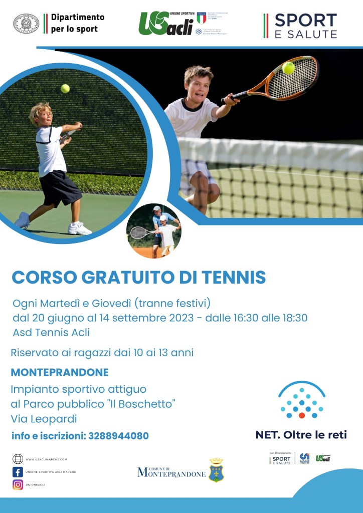MONTEPRANDONE – Nuovi orari e spazi per il corso gratuito di tennis riservato ai ragazzi dai 10 ai 13 anni.