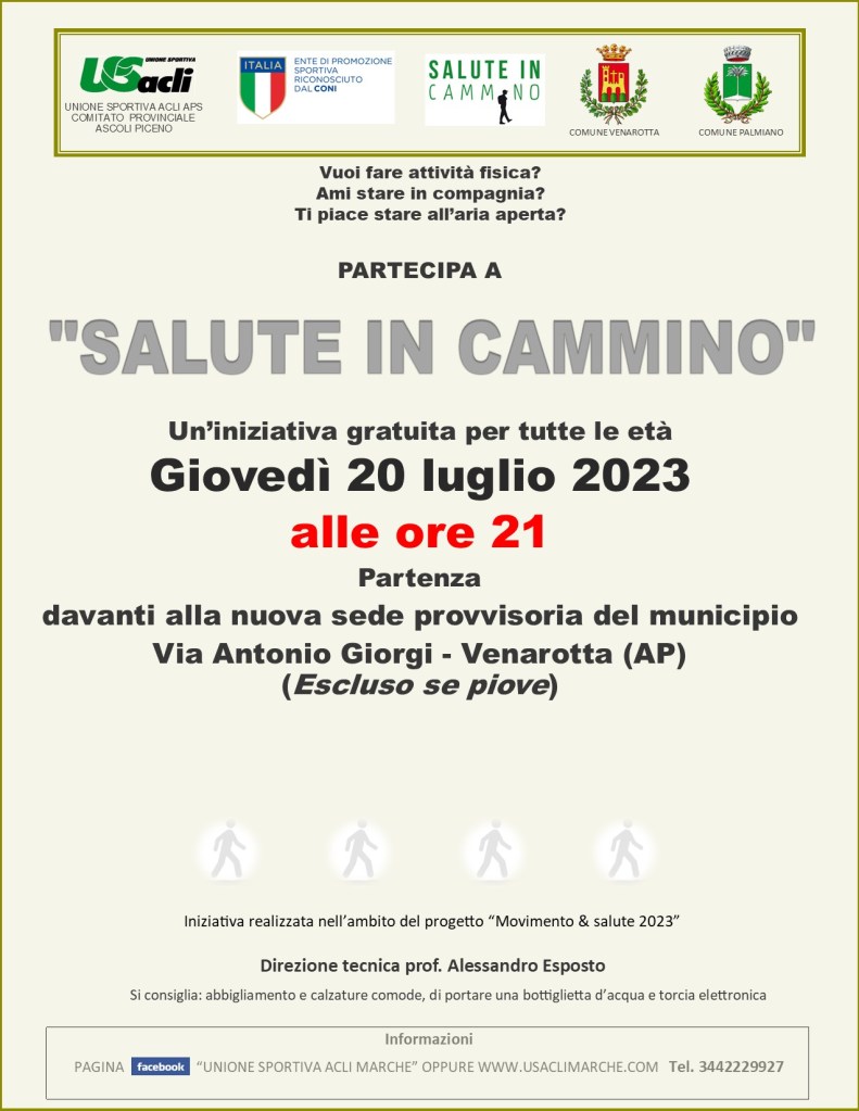 Giovedì 20 luglio, alle 21, con raduno davanti alla sede provvisoria del municipio in via Giorgi è in programma una camminata della durata di un’ora aperta a cittadini di ogni età.