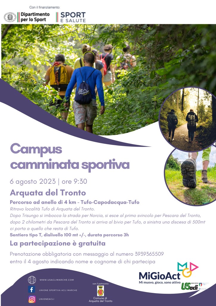 La manifestazione rientra nel progetto nazionale “MiGio.Act – Mi muovo, gioco, sono attivo” ed è patrocinata dal Comune di Arquata del Tronto.