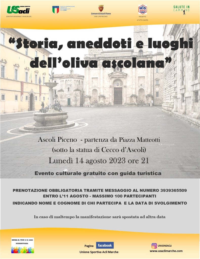 Lunedì 14 agosto è previsto un percorso cittadino dedicato alla storia, agli aneddoti ed ai luoghi dell’oliva ascolana.
