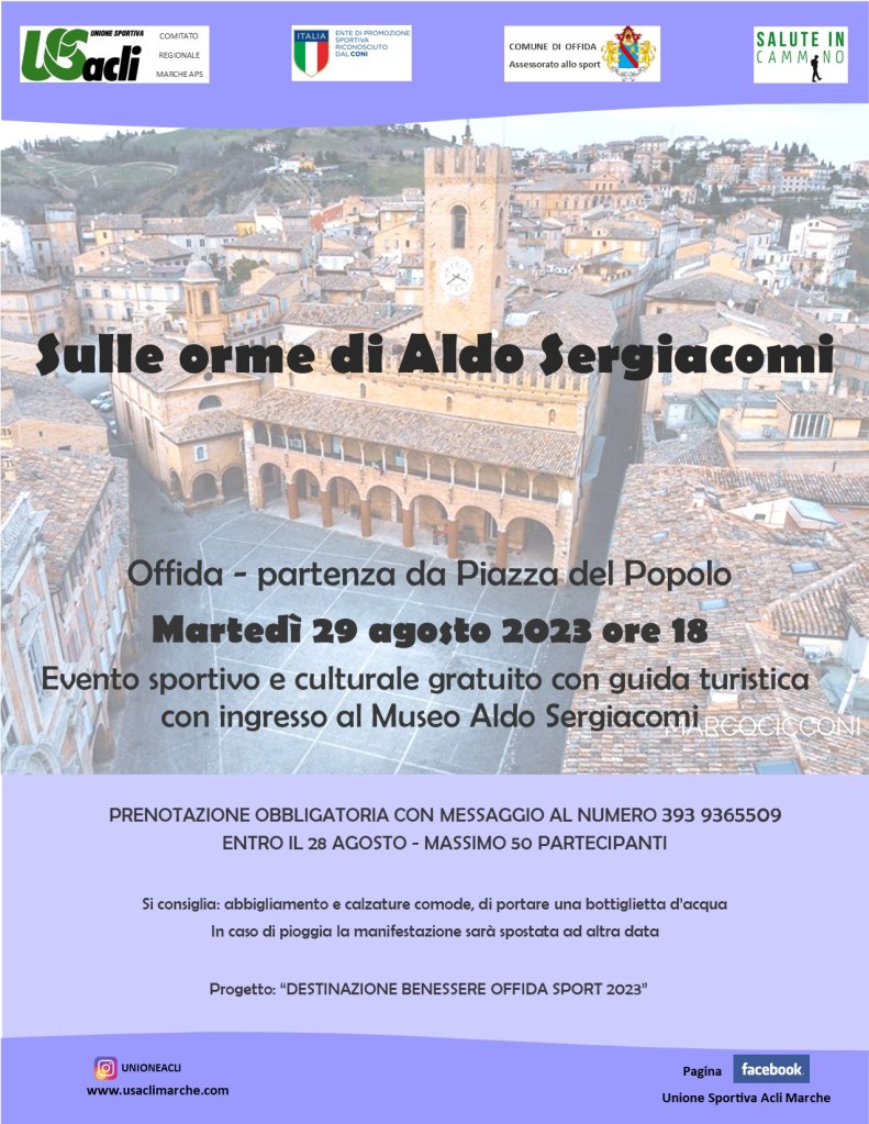 OFFIDA – Martedì 29 agosto, alle 18, con ritrovo in Piazza del Popolo, è in programma l’evento sportivo e culturale con guida turistica “Sulle orme di Aldo Sergiacomi”.