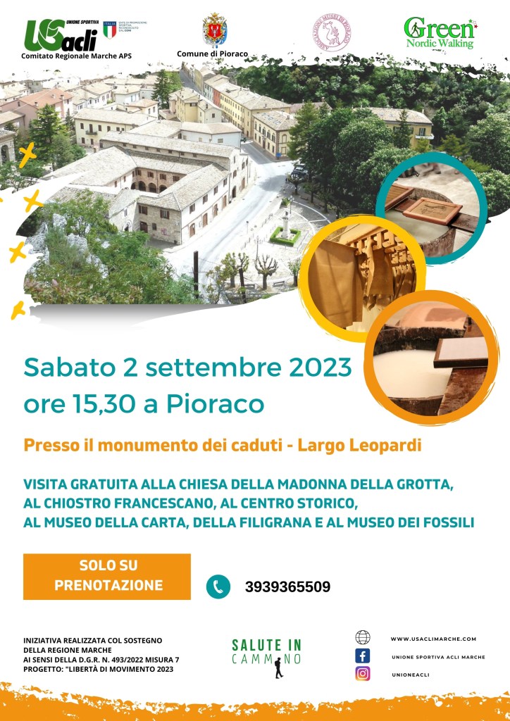 L’iniziativa è organizzata da U.S. Acli Marche Aps in collaborazione con il Comune di Pioraco, l’Associazione Musei di Pioraco e l’ASD Green Nordic Walking.