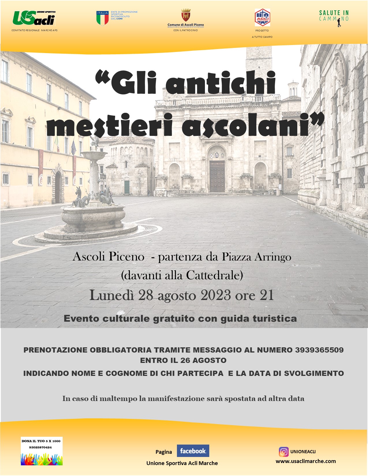 Lunedì 28 agosto è previsto un percorso cittadino dedicato a “Gli antichi mestieri ascolani”.