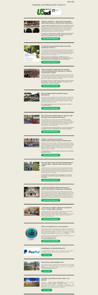 agosto 29, 2023 Unione Sportiva Acli Marche Newsletter n.8 del 17 agosto 2023 Condividi: Fai clic per condividere su X (Si apre in una nuova finestra) X Fai clic per condividere su Facebook (Si apre in una nuova finestra) Facebook Mi piace Caricamento... Correlati