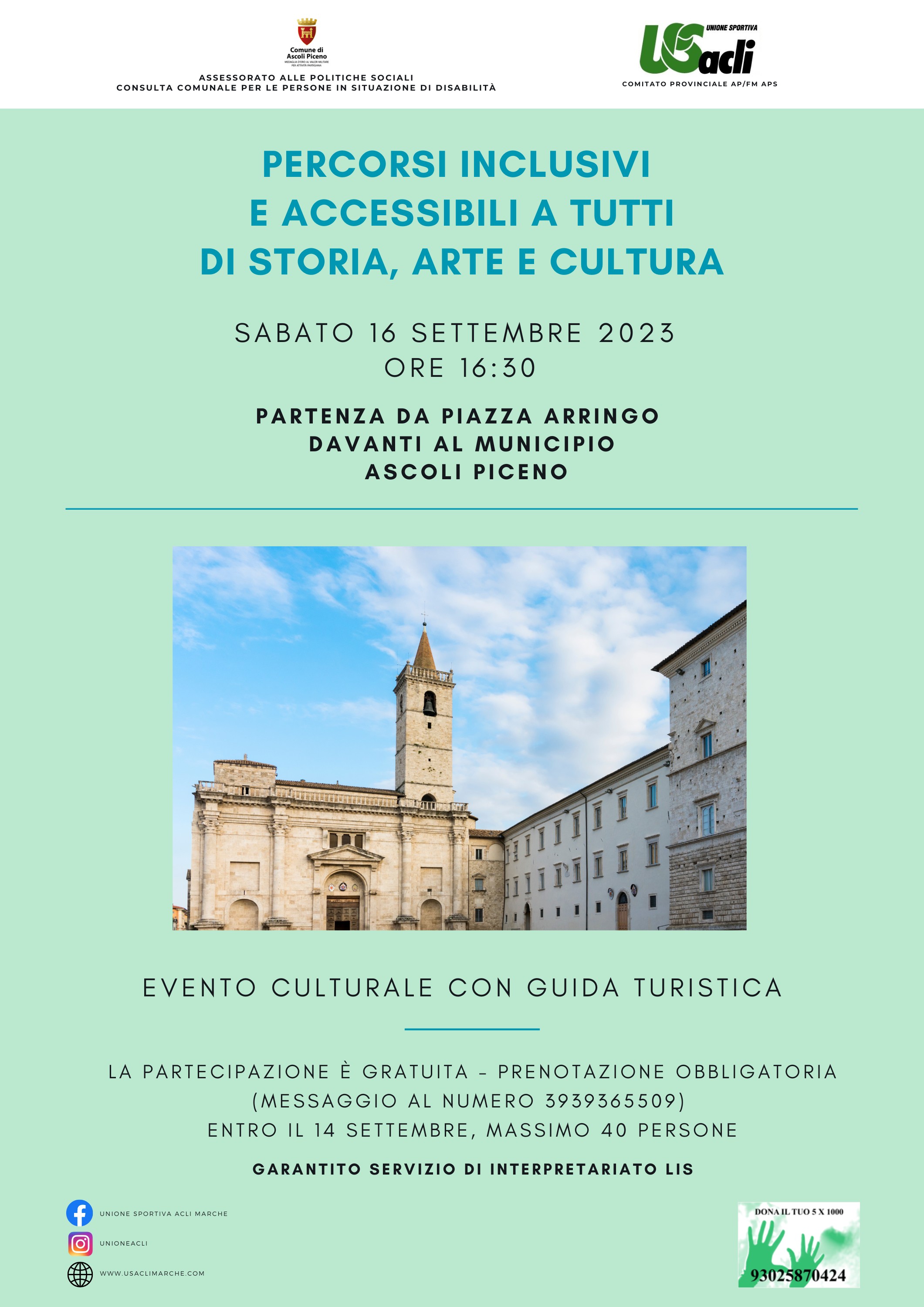 Sabato 16 settembre si svolgerà una iniziativa che prevede l’attraversamento di un percorso inclusivo ed accessibile a tutti per andare alla scoperta dell’arte e della storia della città. di Ascoli.