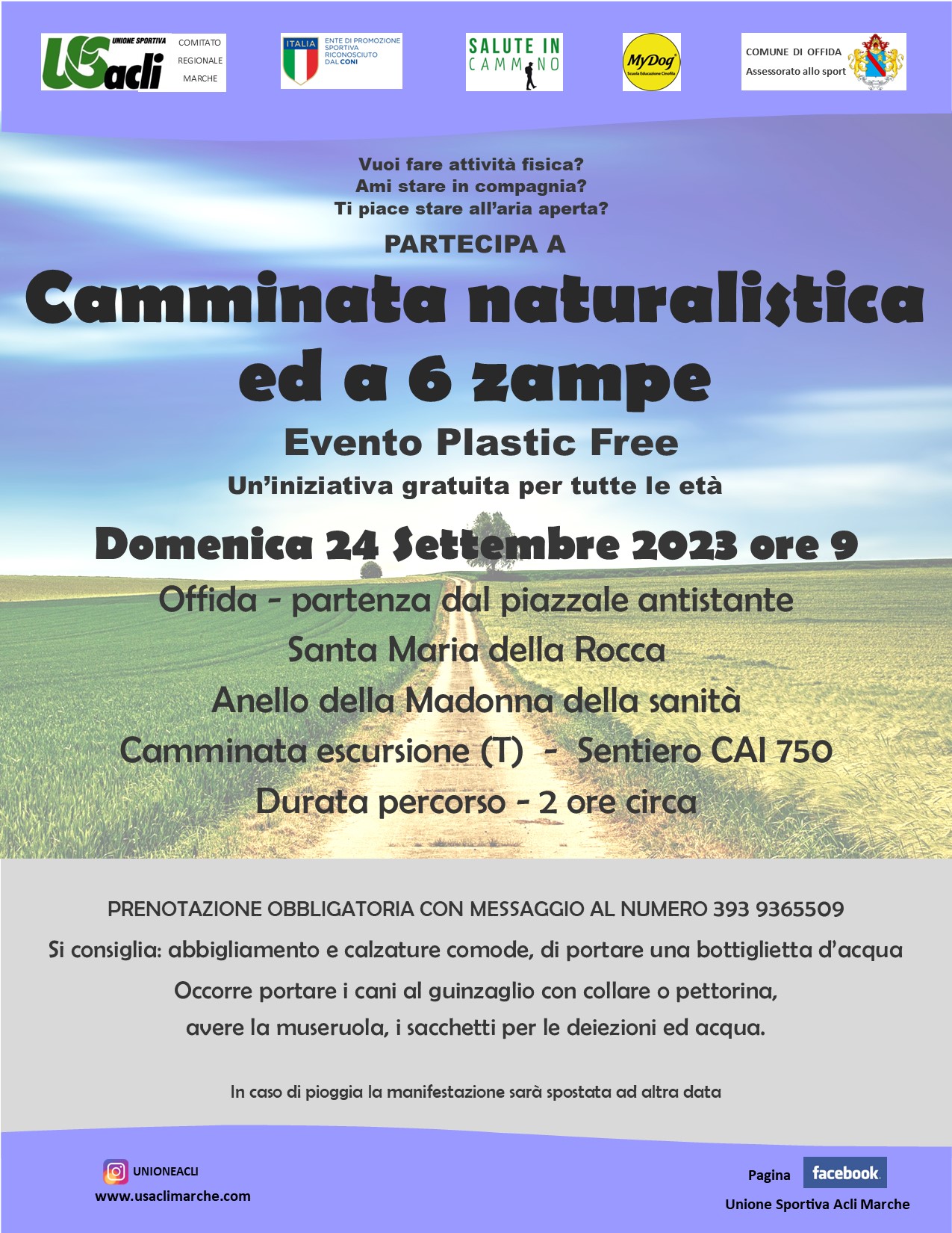 Nell’ambito del progetto “Ricostruzione sportiva e Destinazione Benessere”, domenica 24 settembre si svolgerà la “Camminata naturalistica ed a 6 zampe”.