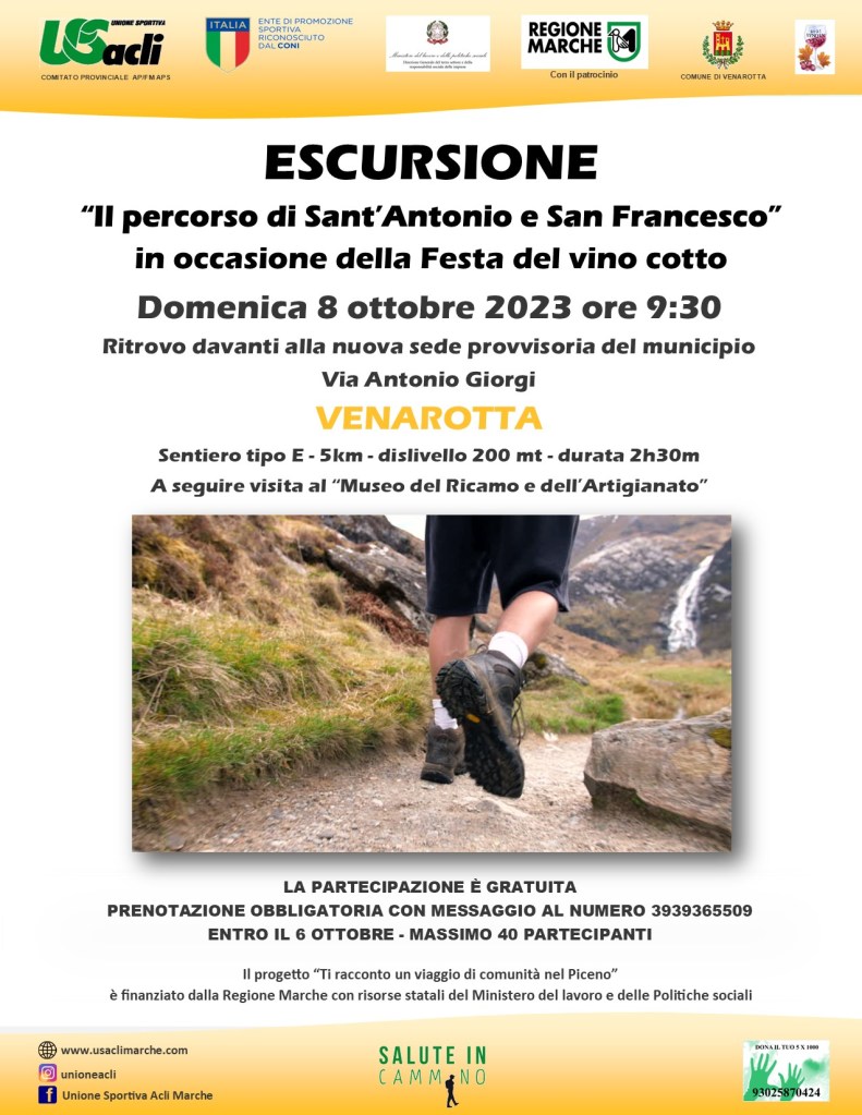 Sarà Venarotta, domenica 8 ottobre, in occasione della “Festa del vino cotto” ad ospitare la settimana tappa del progetto “Ti racconto un viaggio culturale di comunità nel Piceno” curato dall’U.S. Acli provinciale Aps.