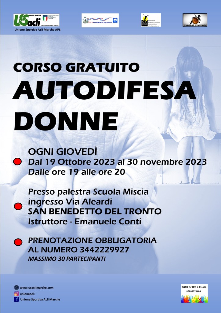Il corso si svolgerà ogni giovedì, dal 19 ottobre al 30 novembre, dalle ore 19 alle 20 presso la palestra della Scuola Miscia (ingresso Via Aleardi) a San Benedetto del Tronto.
