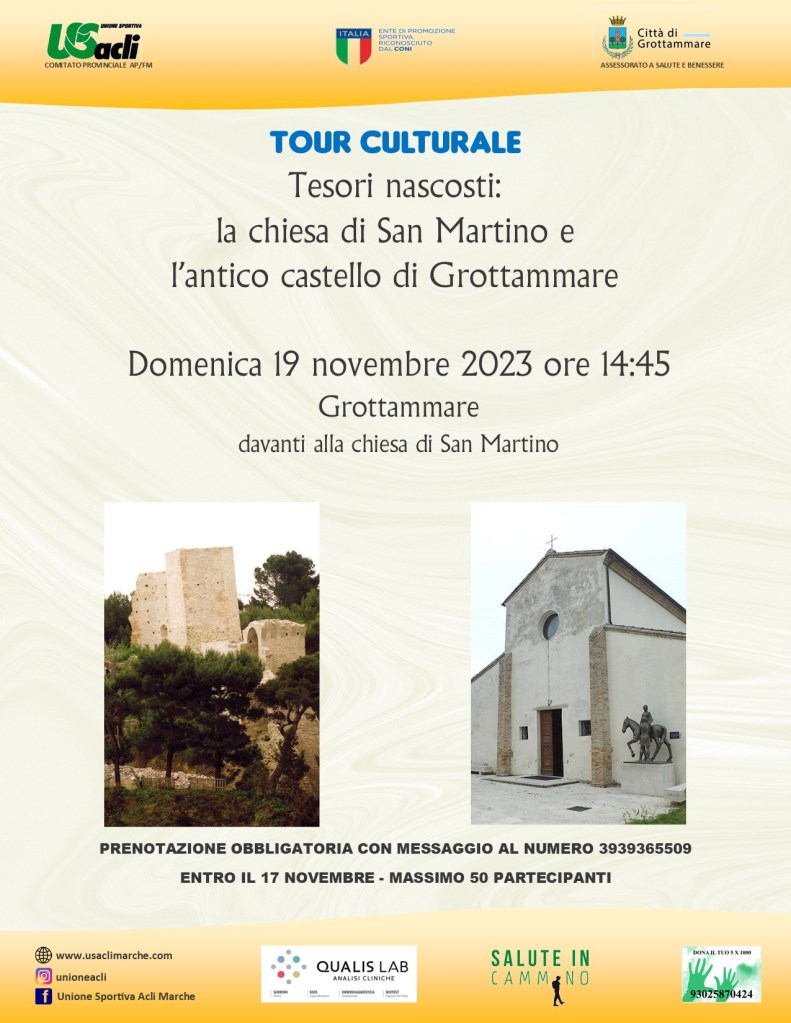 Il programma dell’iniziativa prevede il raduno dei partecipanti e la registrazione alle ore 14,45 del 19 novembre davanti alla chiesa di San Martino a Grottammare.