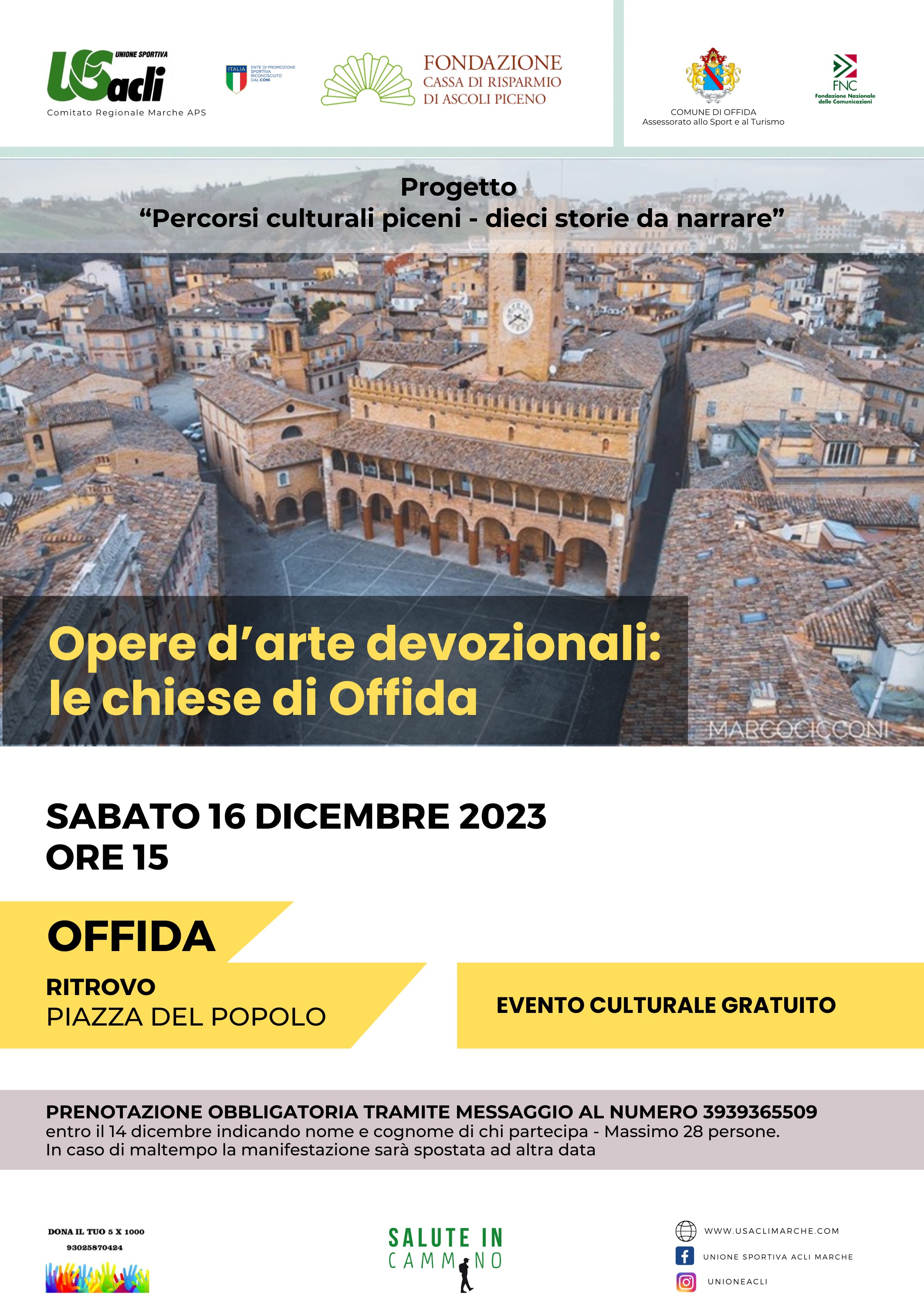 Sabato 16 Dicembre, a partire dalle ore 15 a Offida, è in programma il nono appuntamento col progetto “Percorsi culturali piceni – dieci storie da narrare”.