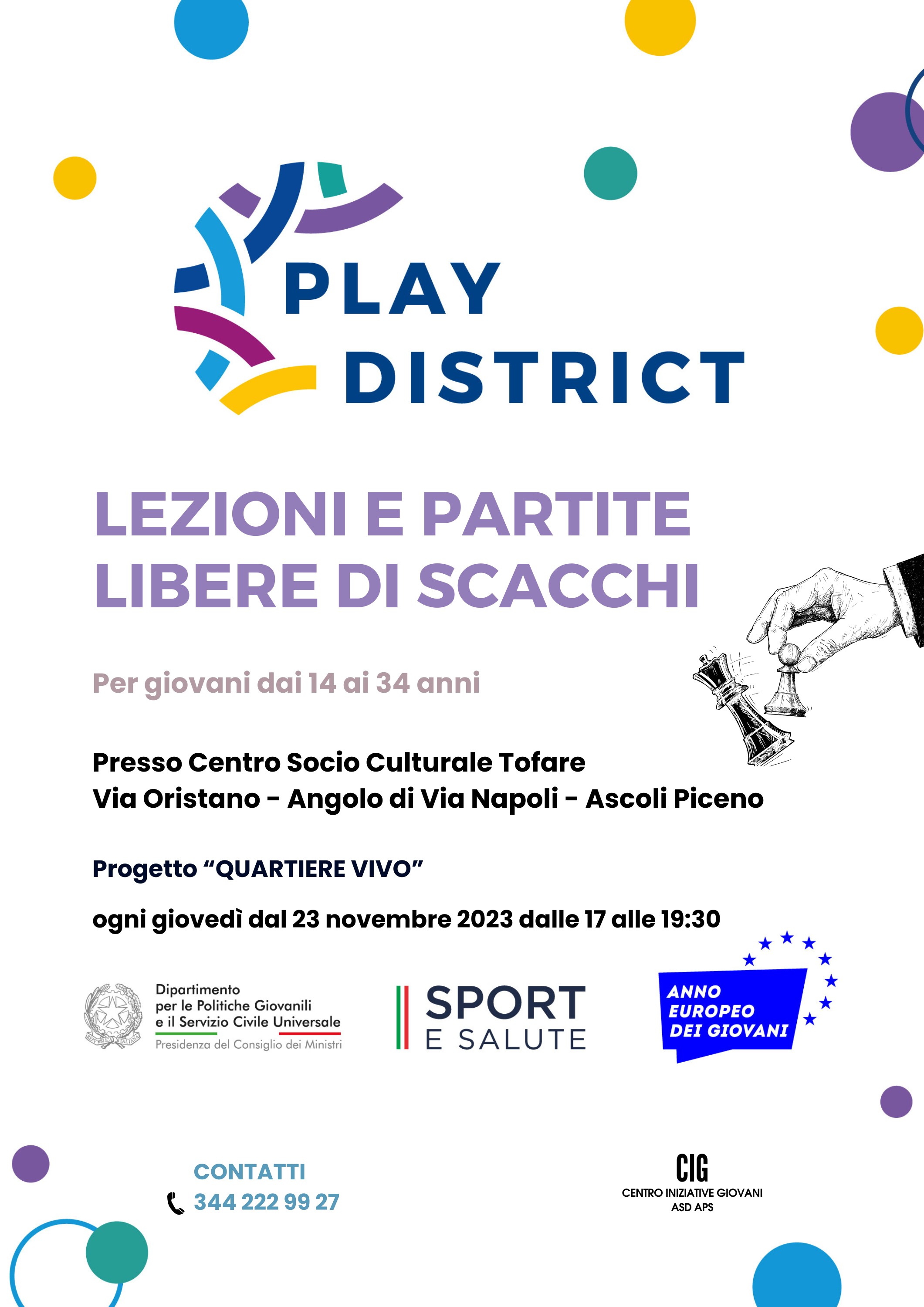 Proseguono i corsi e le partite di scacchi organizzati all’interno delle attività del progetto “Quartiere vivo”, realizzato con il finanziamento messo a bando da Sport e Salute SpA, attraverso ilDipartimento per le politiche giovanili e il Servizio Civile universale della Presidenza del Consiglio dei Ministri.