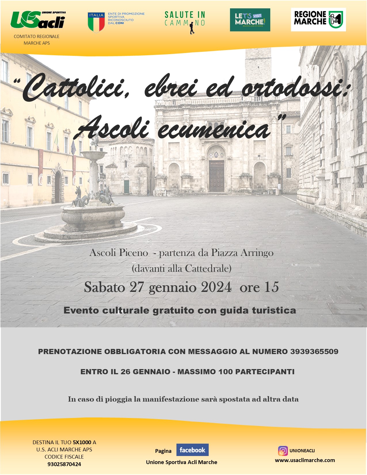 Alle 15,30, infatti, è in programma l’evento culturale gratuito con guida turistica “Cattolici, ebrei ed ortodossi: Ascoli ecumenica” con partenza da Piazza Arringo.