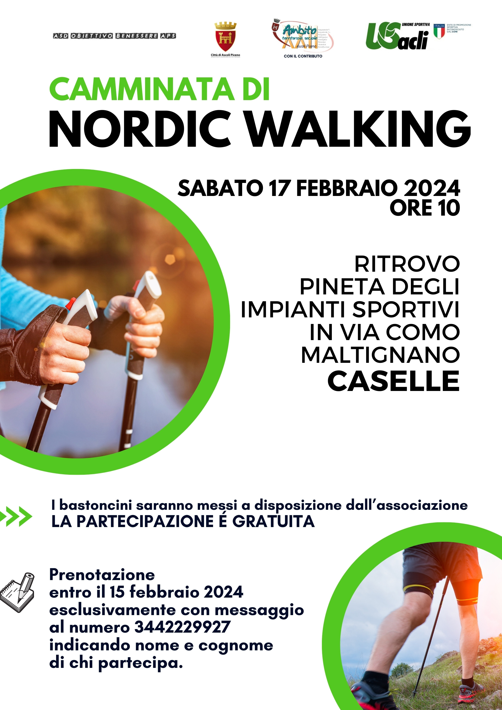 MALTIGNANO – Grazie alla collaborazione di ASD APS Obiettivo Benessere e Ambito sociale territoriale XXII è in programma sabato 17 febbraio alle ore 10 una camminata di Nordic Walking.