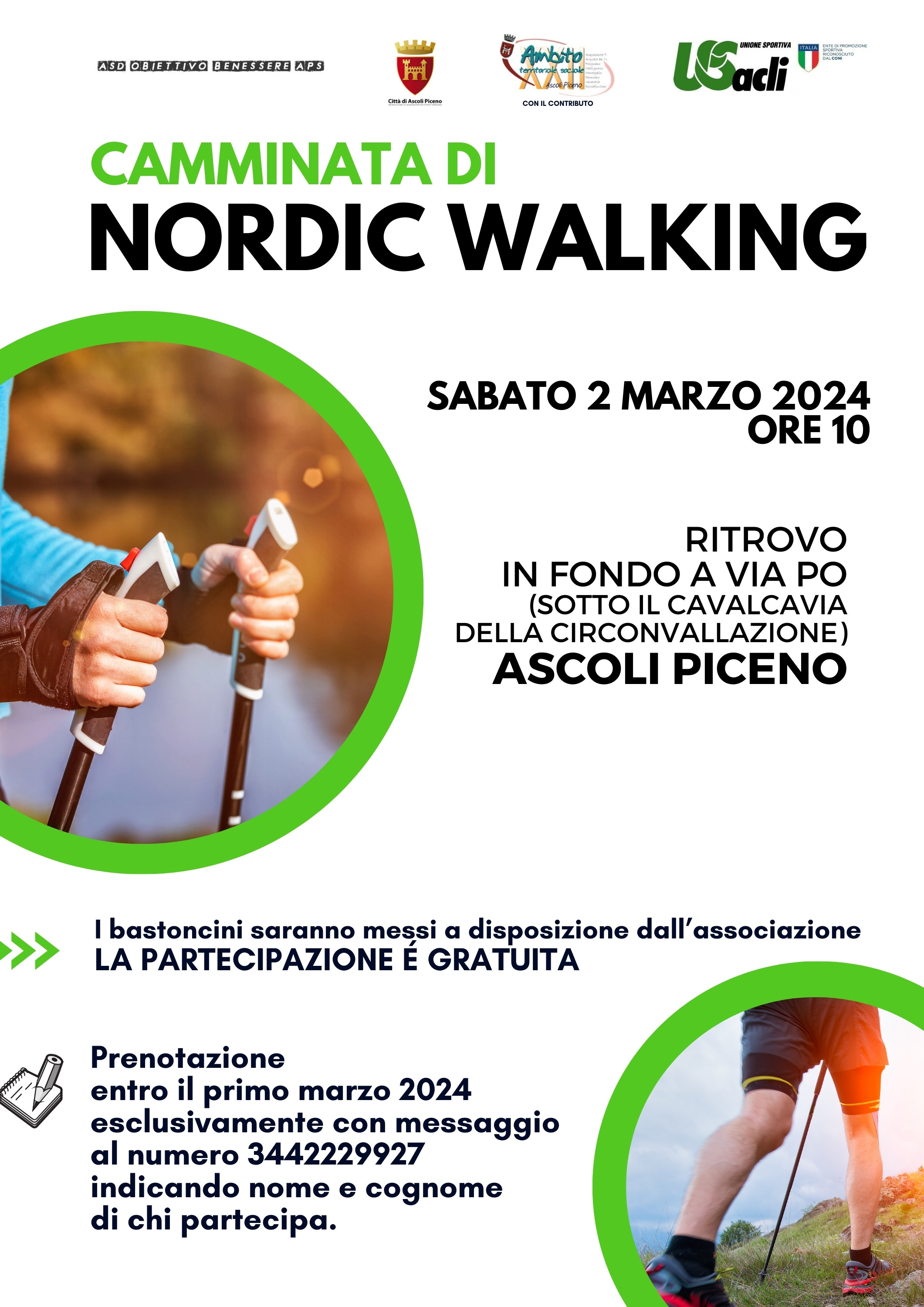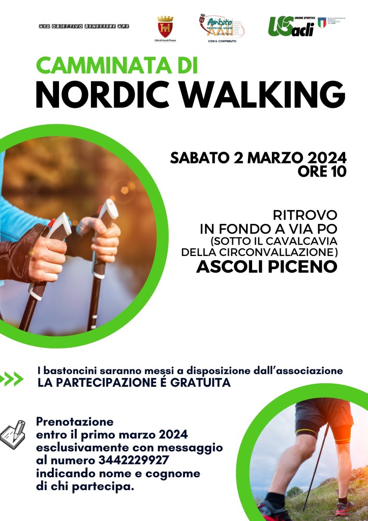 ASCOLI – Grazie alla collaborazione di ASD APS Obiettivo Benessere e Ambito sociale territoriale XXII è in programma sabato 2 marzo alle ore 10 una camminata di Nordic Walking.