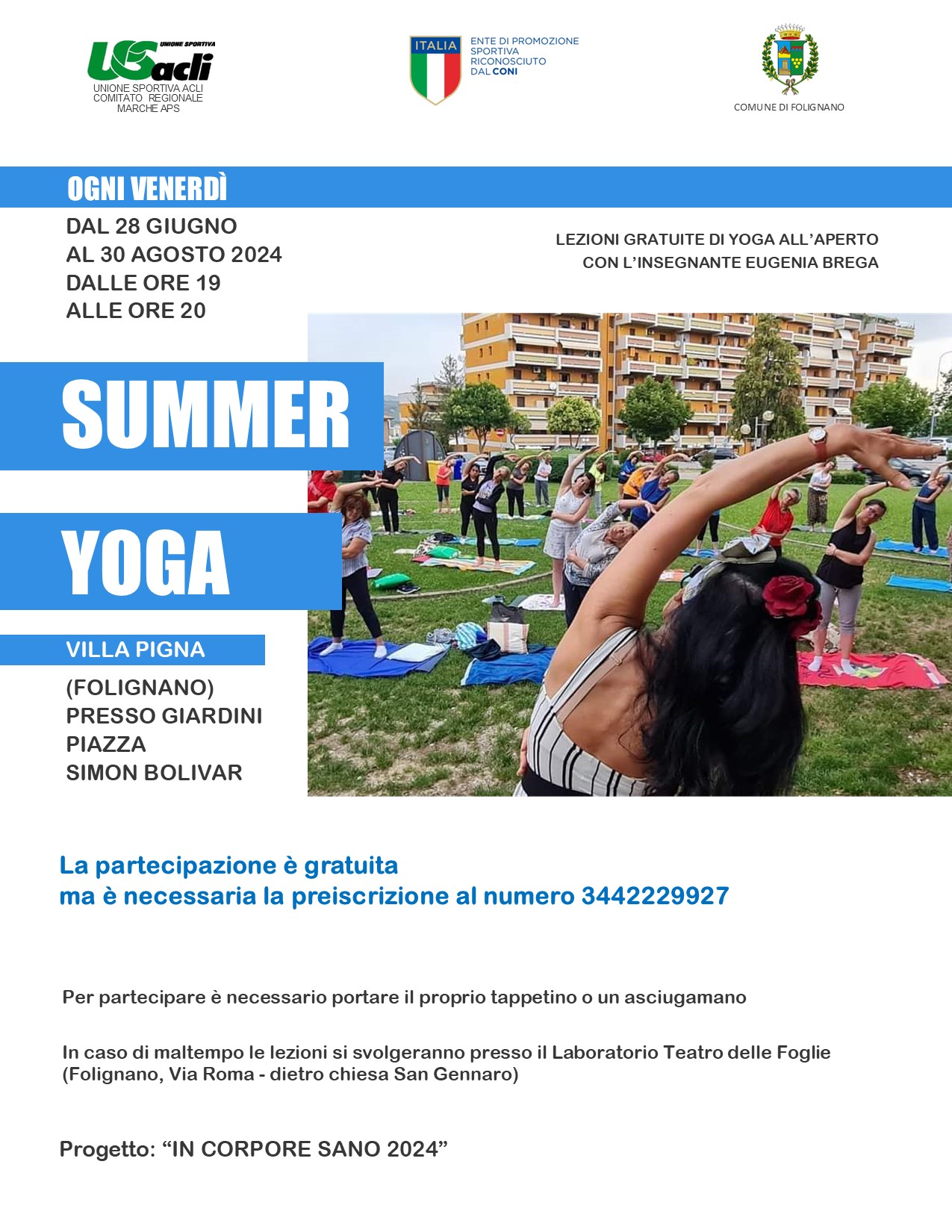 Per partecipare occorre portare il proprio tappetino o un asciugamano.