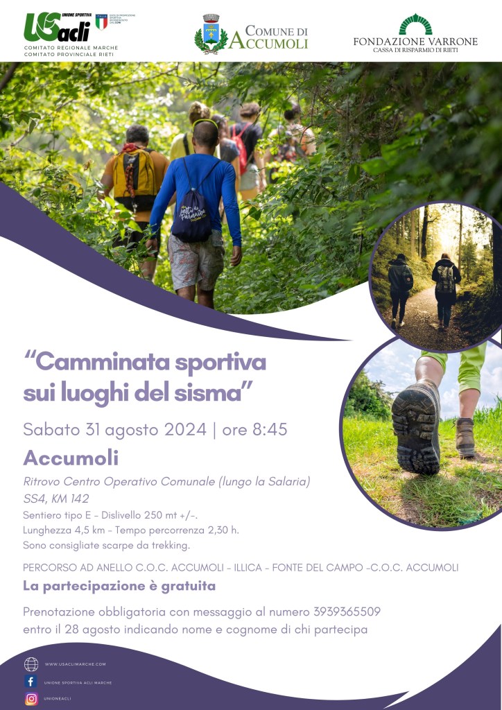 L’iniziativa è organizzata da U.S. Acli Marche Aps e U.S. Acli Rieti, col sostegno e il contributo della Fondazione Varrone – Cassa Di Risparmio di Rieti e il patrocinio del Comune di Accumoli.