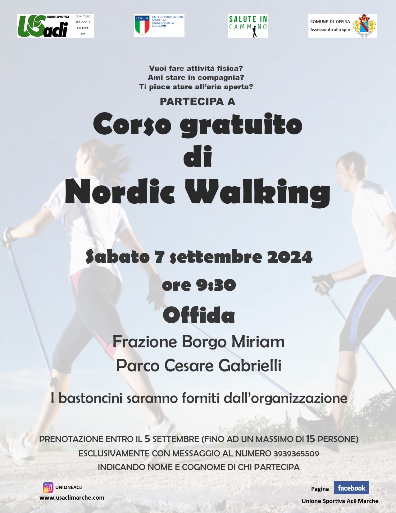Nell’ambito del progetto “Ricostruzione sportiva e Destinazione Benessere”, sabato 7 settembre alle 9,30 si svolgerà un corso di Nordic Walking.