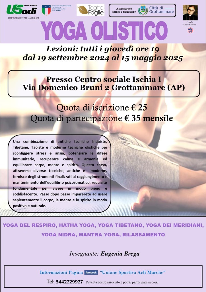 GROTTAMMARE – Dal 19 settembre, ogni giovedì alle 19, si svolgerà un corso di yoga olistico presso i locali (gentilmente concessi) del Centro sociale Ischia I in via Domenico Bruni 2 a Grottammare.