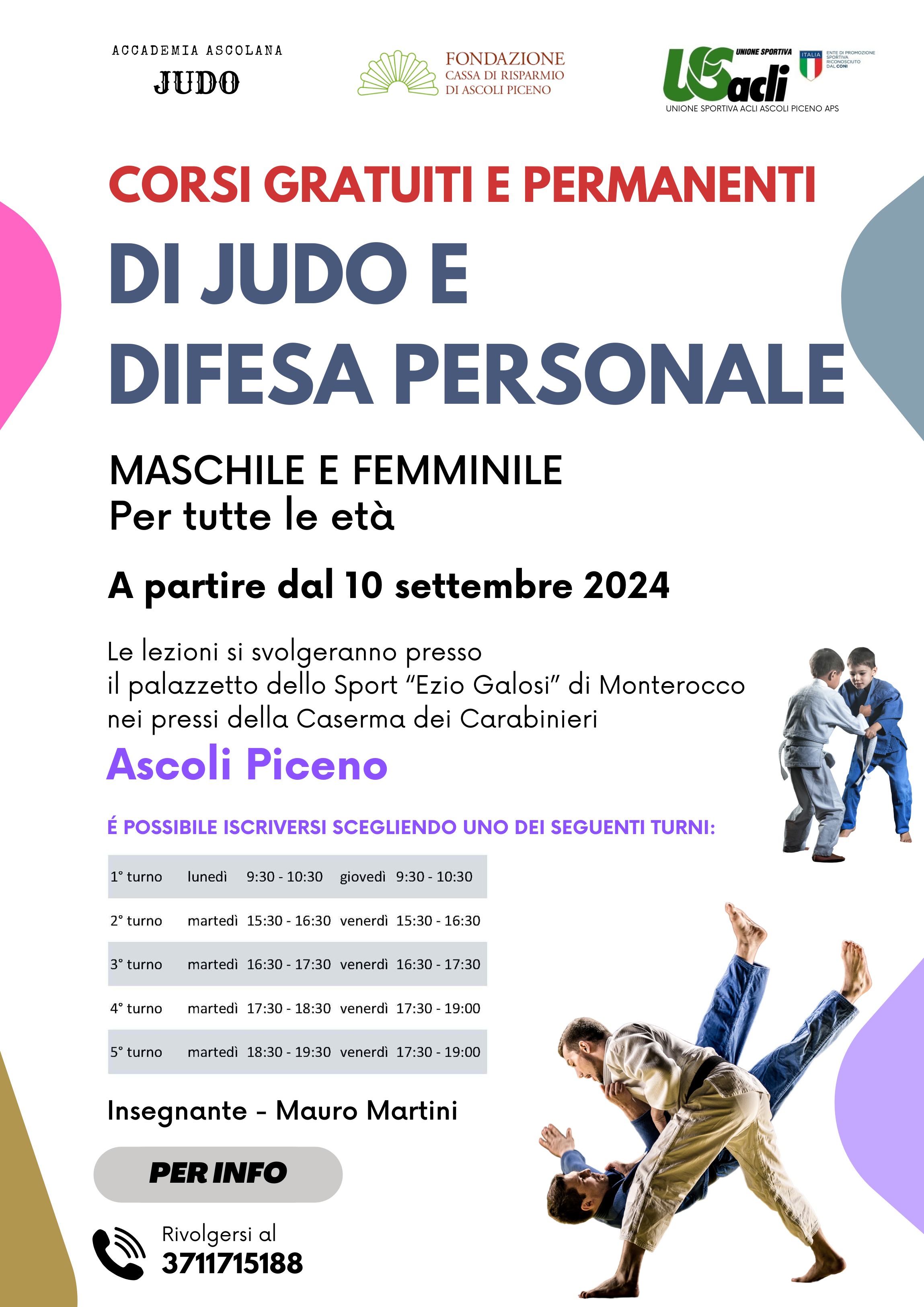 L’iniziativa è promossa da Accademia ascolana judo difesa personale Asd, affiliata U.S. Acli, con il contributo della Fondazione Cassa Di Risparmio di Ascoli Piceno ed è aperta a persone di ogni età.