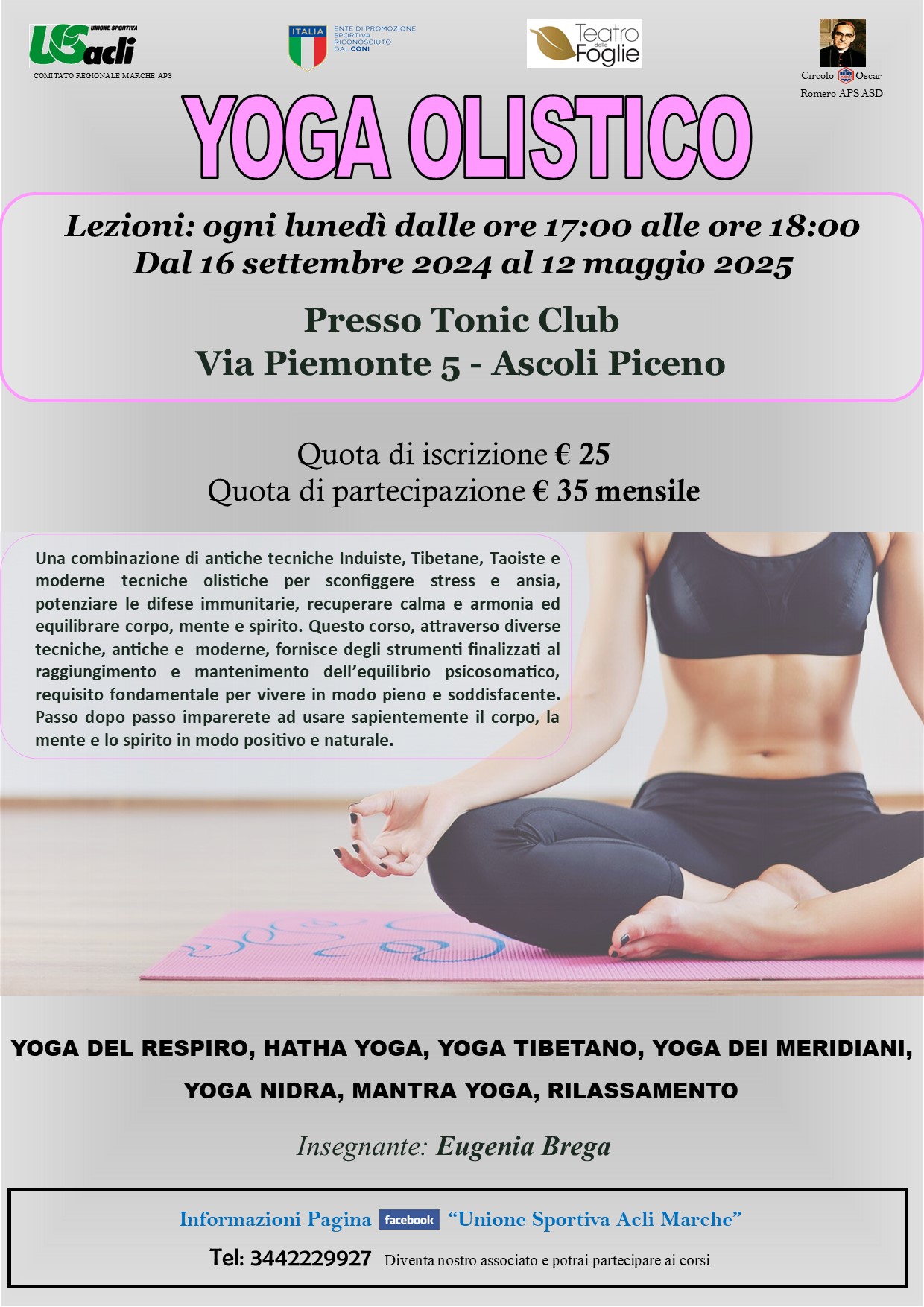 Ascoli Piceno – Dopo la pausa estiva riprenderà lunedì 16 settembre il corso di yoga olistico Tronto tenuto dall’insegnante Eugenia Brega.