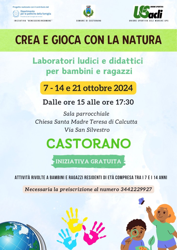 CASTORANO – Nei giorni 7, 14 e 21 ottobre è in programma l’iniziativa “Crea e gioca con la natura”.
