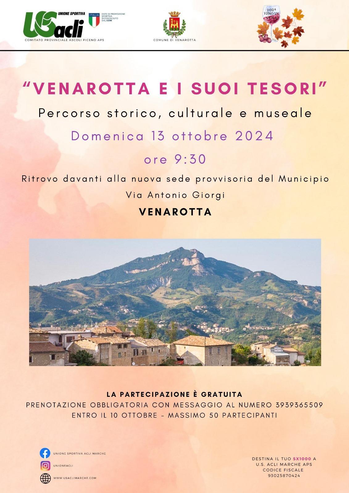 Il 13 ottobre è in programma “Venarotta e i suoi tesori”, un percorso storico, culturale e museale.