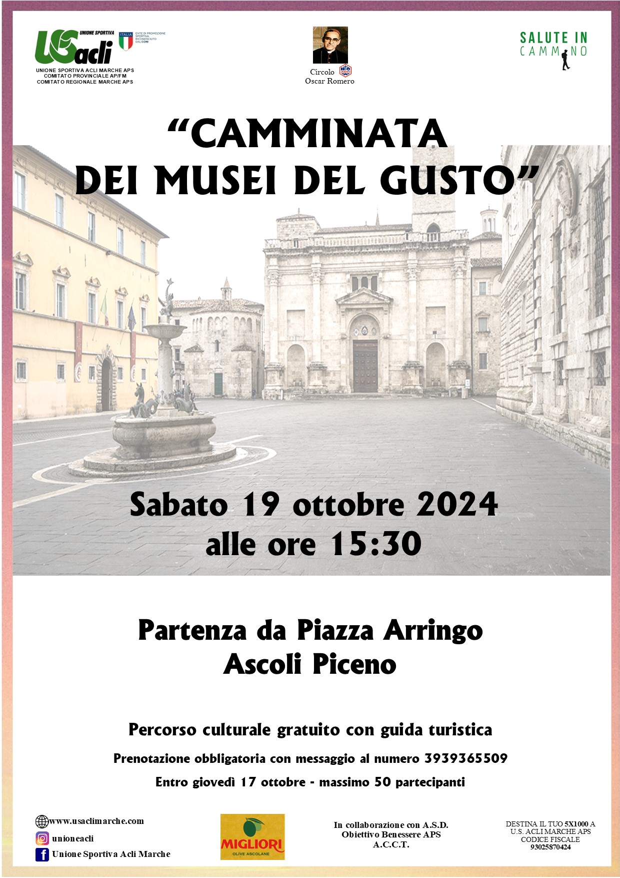 L’appuntamento è alle 15,30 in Piazza Arringo (davanti alla cattedrale) e l’iniziativa “Camminata dei musei del gusto” è promossa da U.S. Acli provinciale Aps col sostegno della Regione Marche.