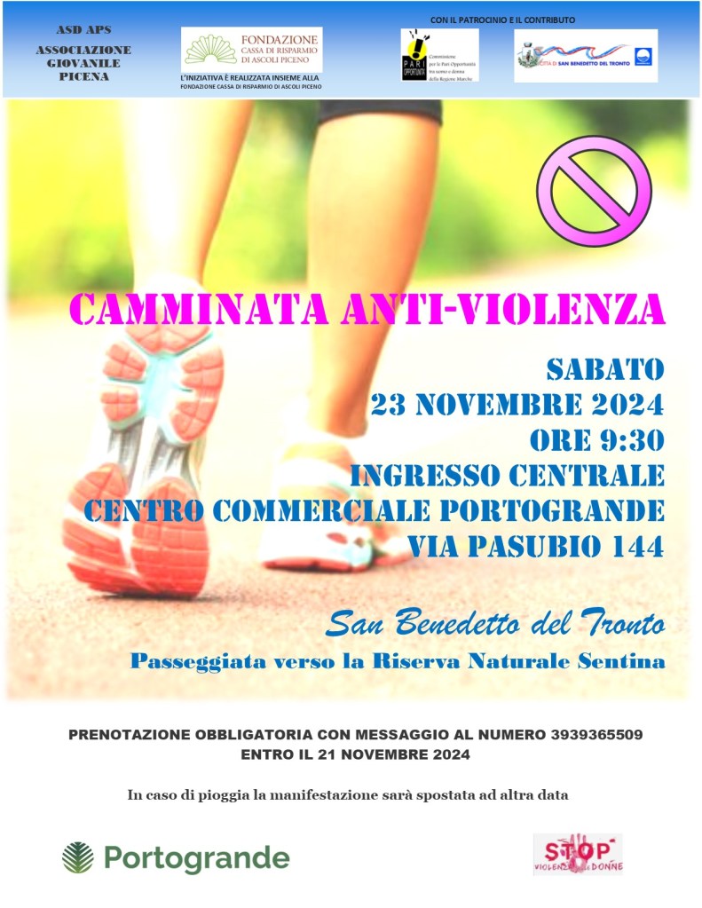 Sabato 23 novembre si svolgerà una nuova edizione della “Camminata anti-violenza” promossa da Associazione Giovanile Picena Asd Aps.