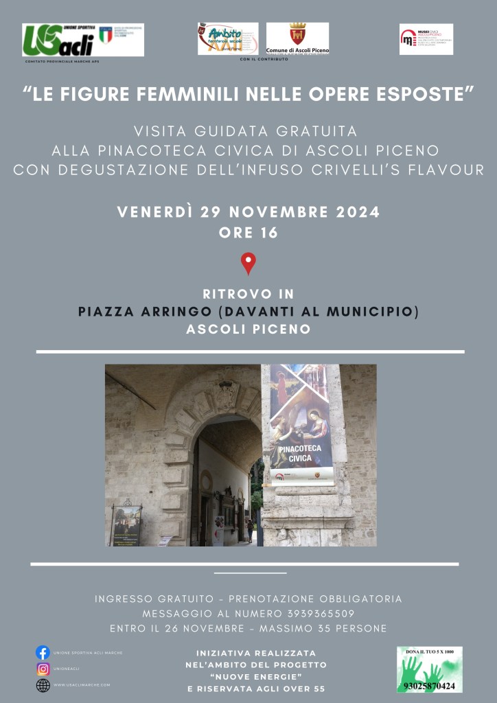 Il programma della manifestazione prevede il ritrovo alle 16 davanti al municipio in Piazza Arringo, la visita guidata gratuita alla Pinacoteca civica e a seguire, grazie alla collaborazione di Ascoli Musei, la degustazione dell’infuso Crivelli’s Flavour.