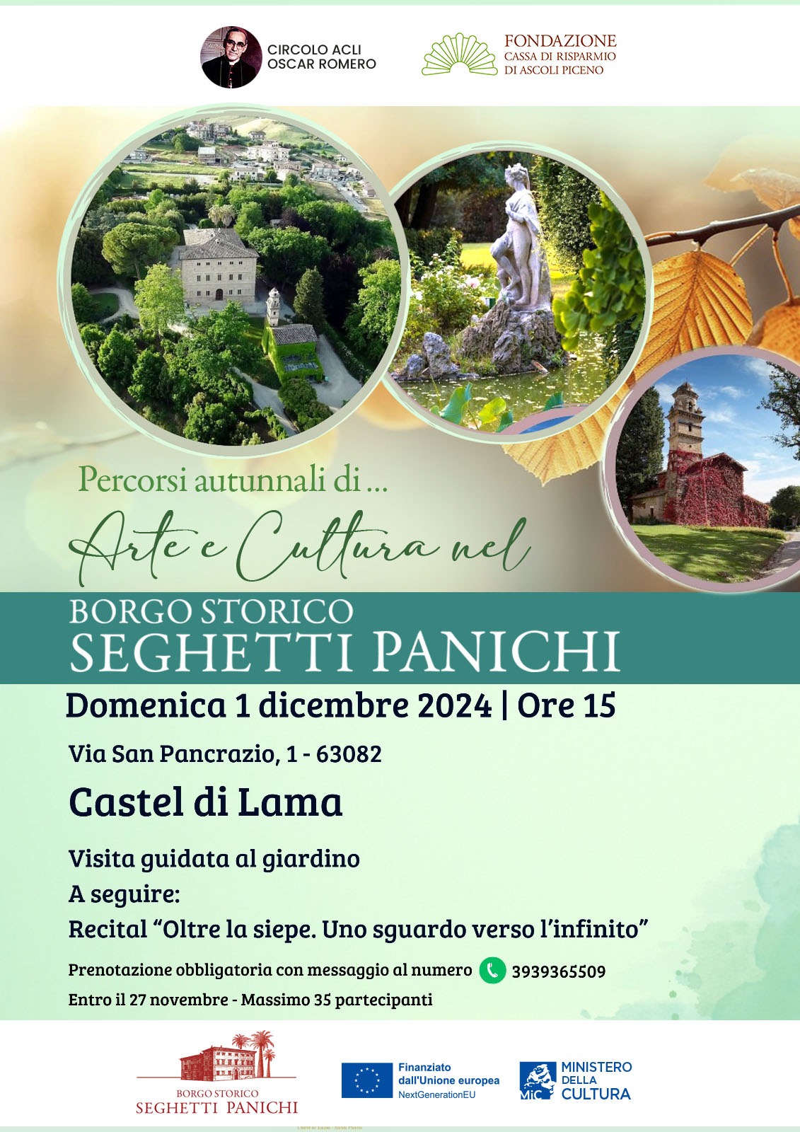 Castel di Lama – Prenderà il via domenica primo Dicembre il progetto “Percorsi autunnali di arte e cultura nel Borgo Storico Seghetti Panichi”. L’iniziativa si svolgerà a partire dalle ore 15 presso la struttura sita a Castel di Lama in Via San Pancrazio 1.