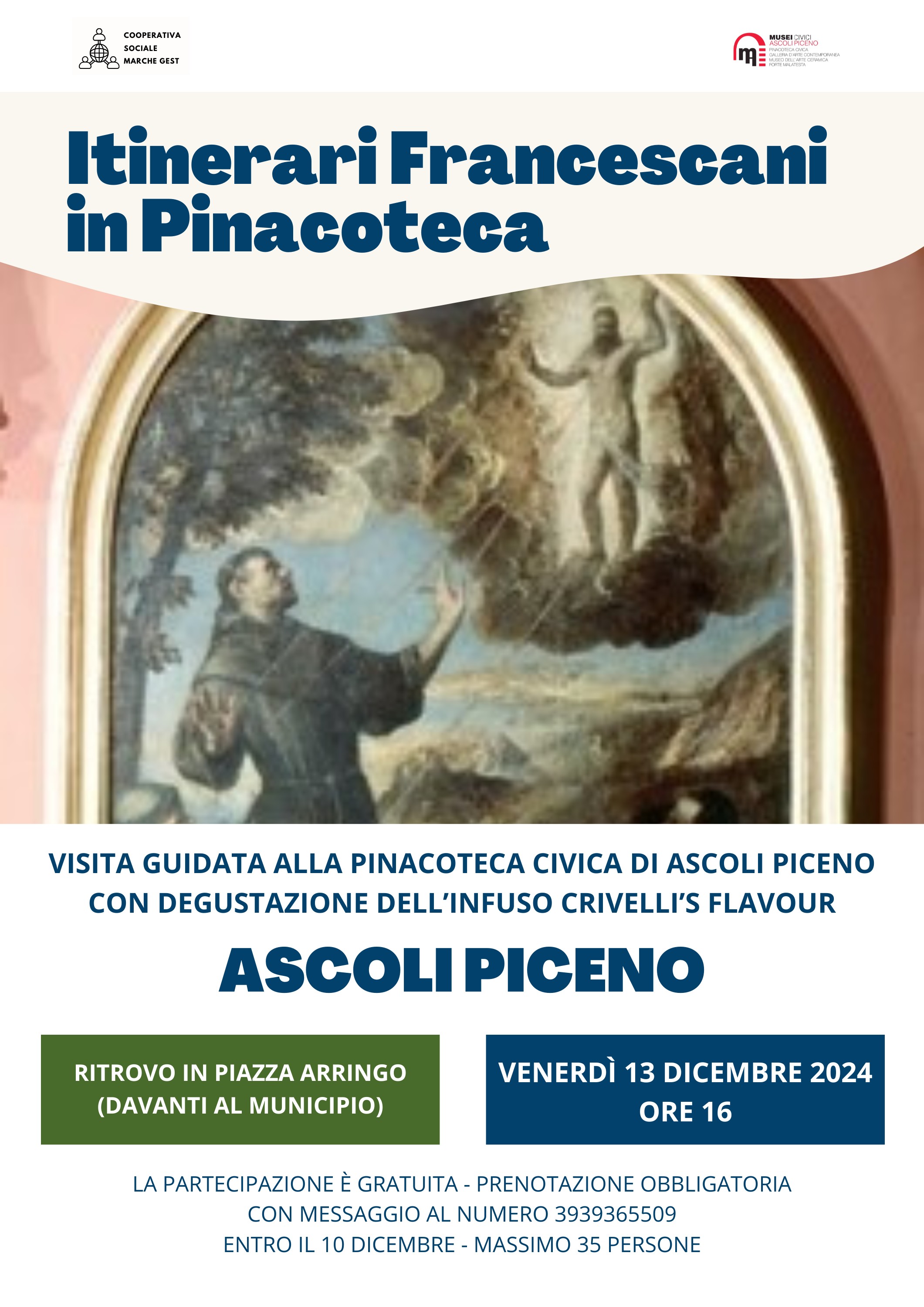 ASCOLI – La Pinacoteca Civica ospiterà venerdì 13 dicembre il secondo appuntamento con l’evento “Itinerari francescani in Pinacoteca” a cura di Cooperativa Marche Gest.