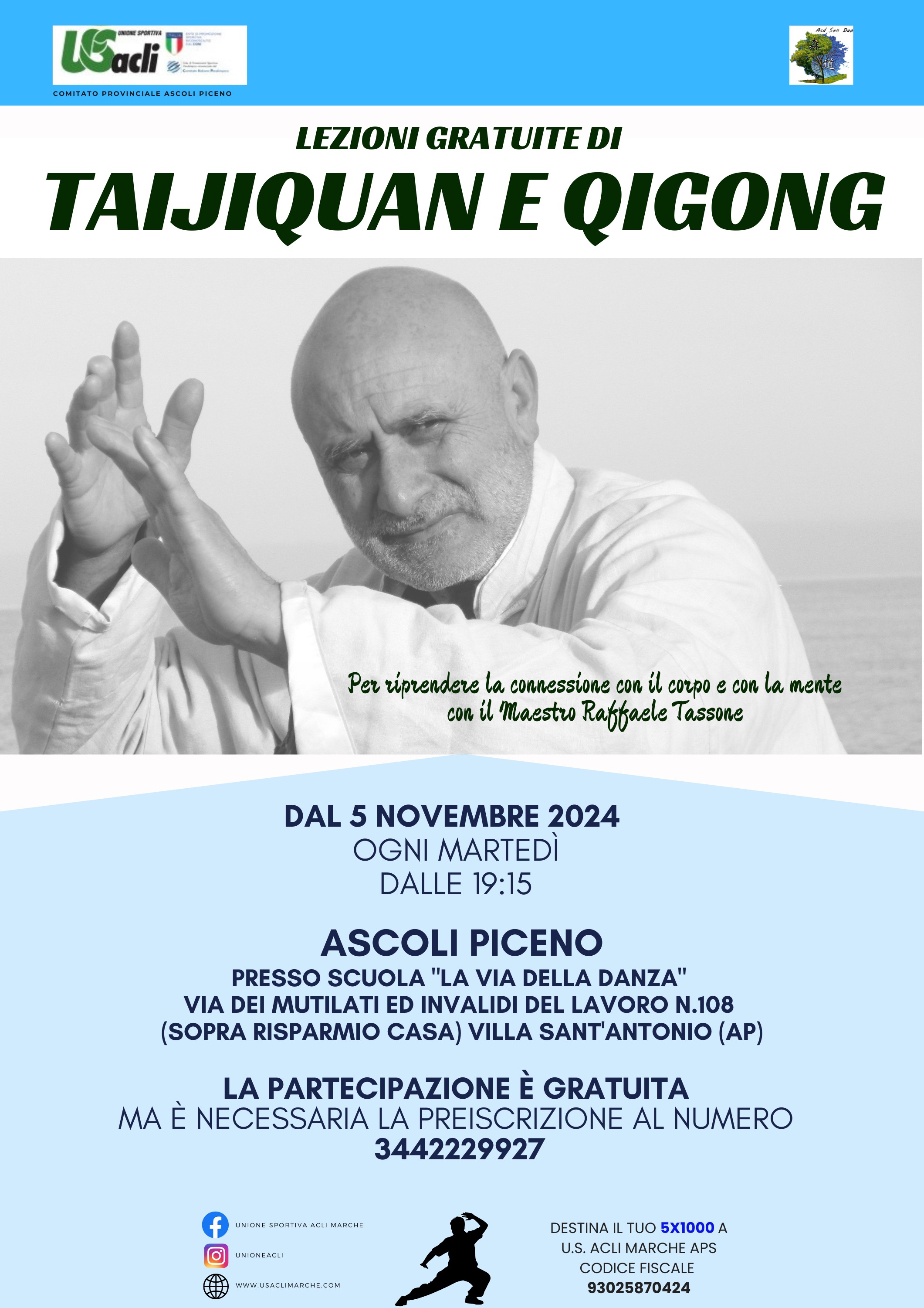 ASCOLI – Ha preso il via un nuovo corso gratuito di taijiquan e qigong realizzato da U.S. Acli provinciale Aps e Asd Sen Dao.